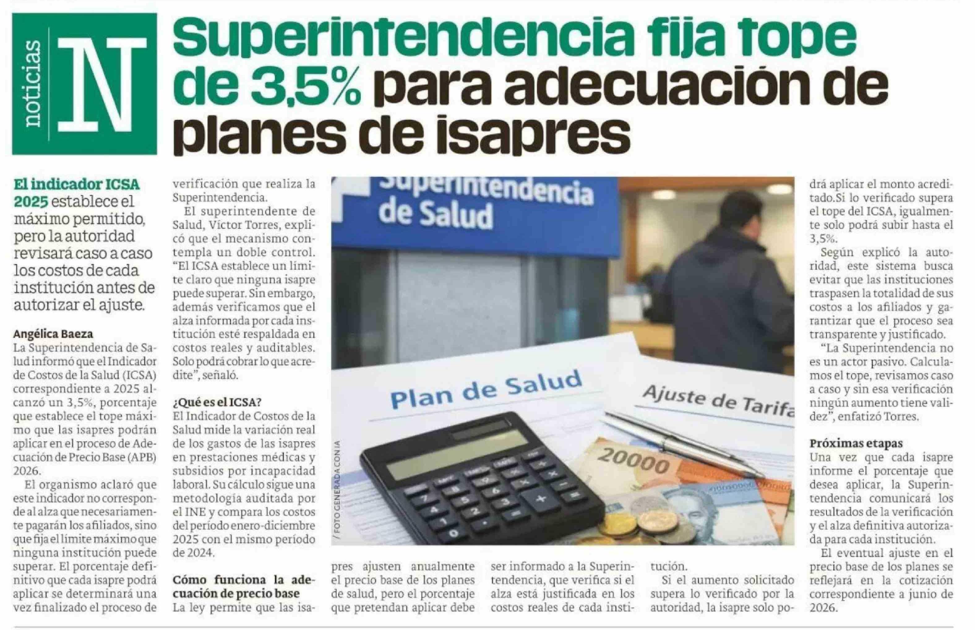 Título: Superintendencia fija tope de 3,5% para adecuación de planes de isapres