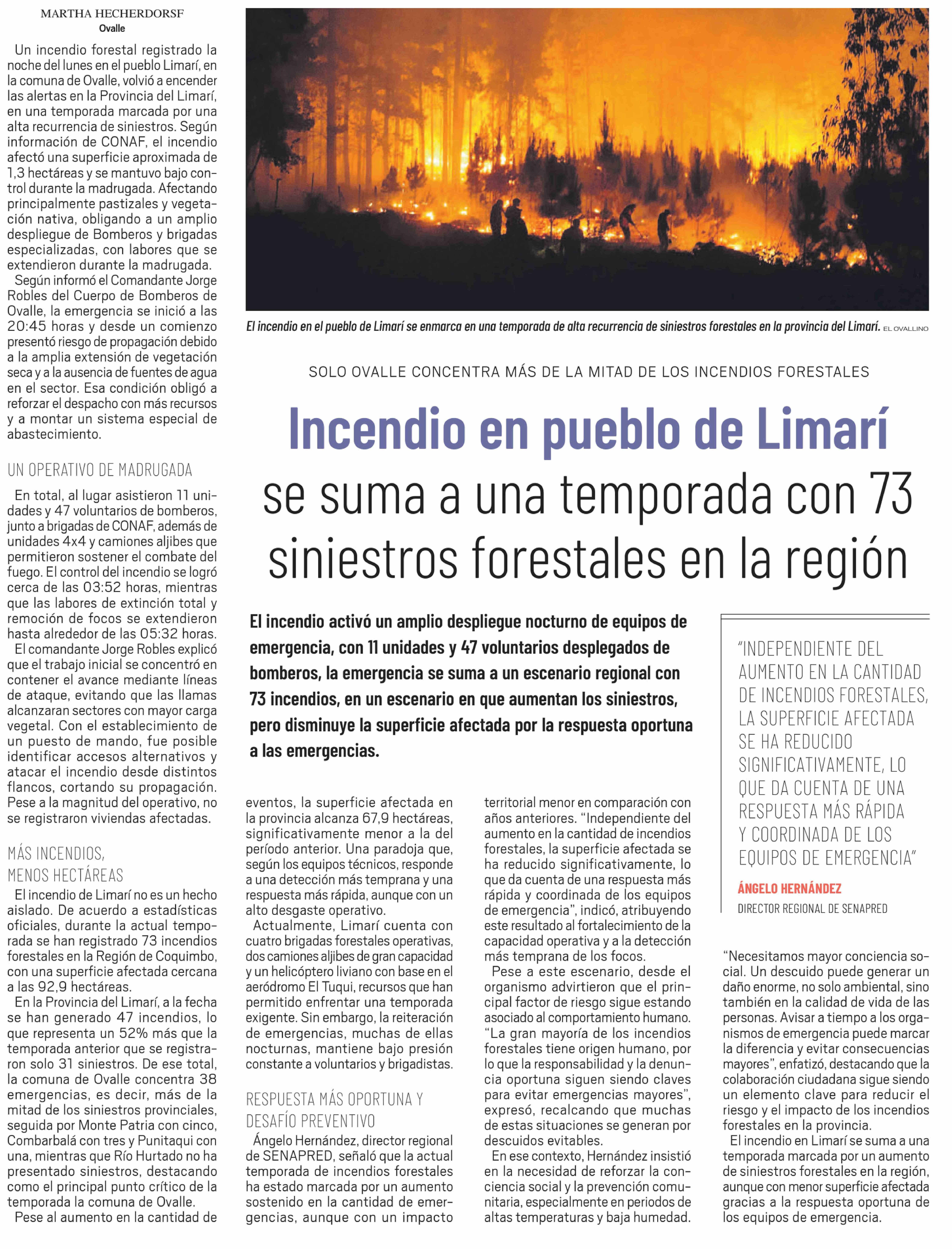 Título: Incendio en pueblo de Limarí se suma a una temporada con 73 siniestros forestales en la región