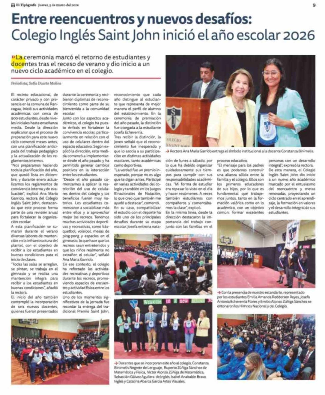 Entre reencuentros y nuevos desafíos: Colegio Inglés Saint John inició el año escolar 2026 05-03-2026 El Tipógrafo |