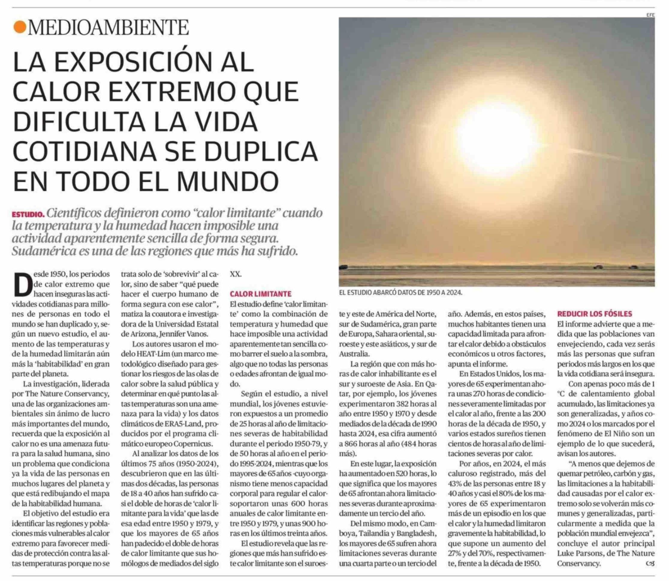 LA EXPOSICIÓN AL CALOR EXTREMO QUE DIFICULTA LA VIDA COTIDIANA SE DUPLICA EN TODO EL MUNDO 04-04-2026 El Mercurio de Calama |