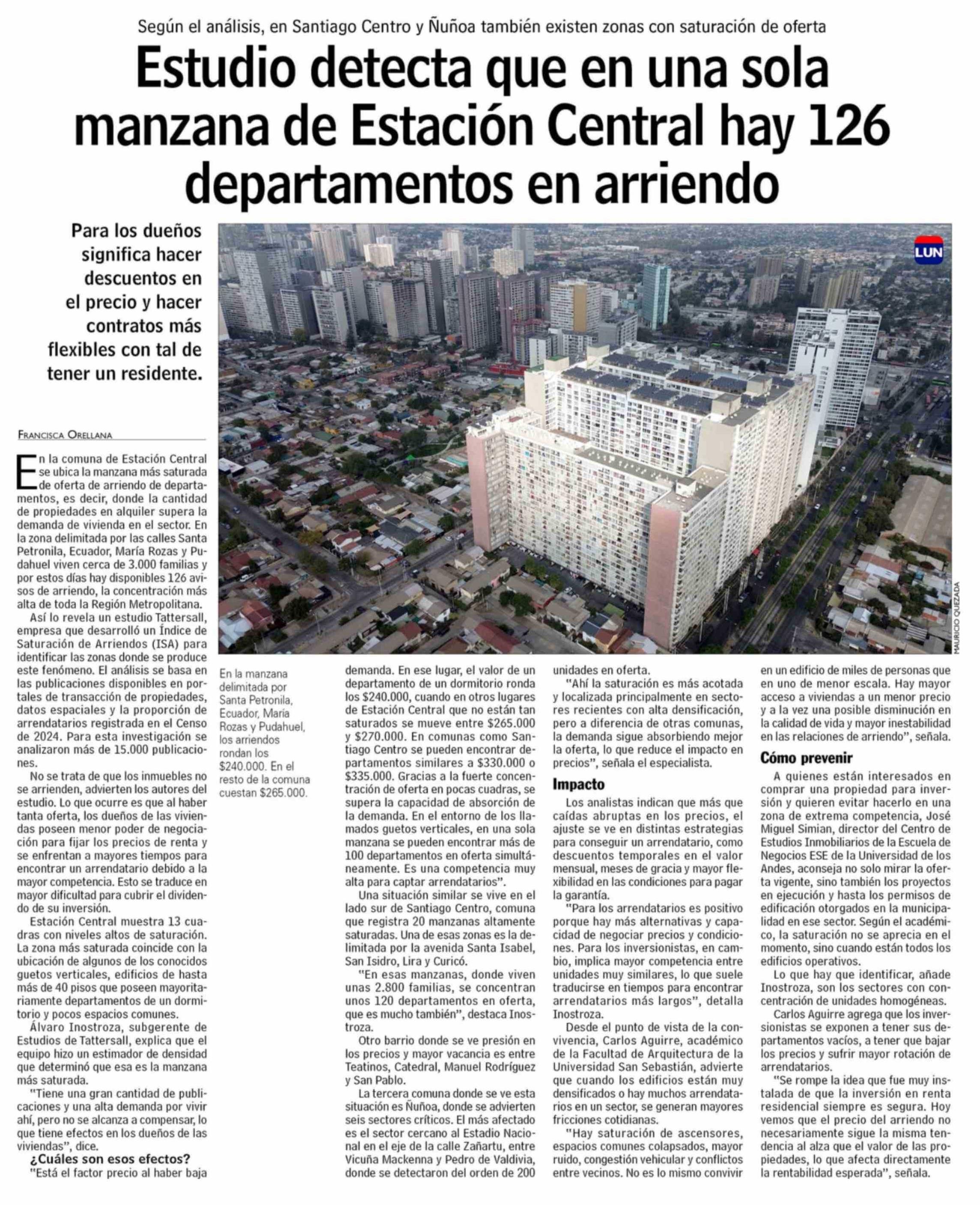 | Título: | Estudio detecta que en una sola manzana de Estacion Central hay 126 departamentos en arriendo |
