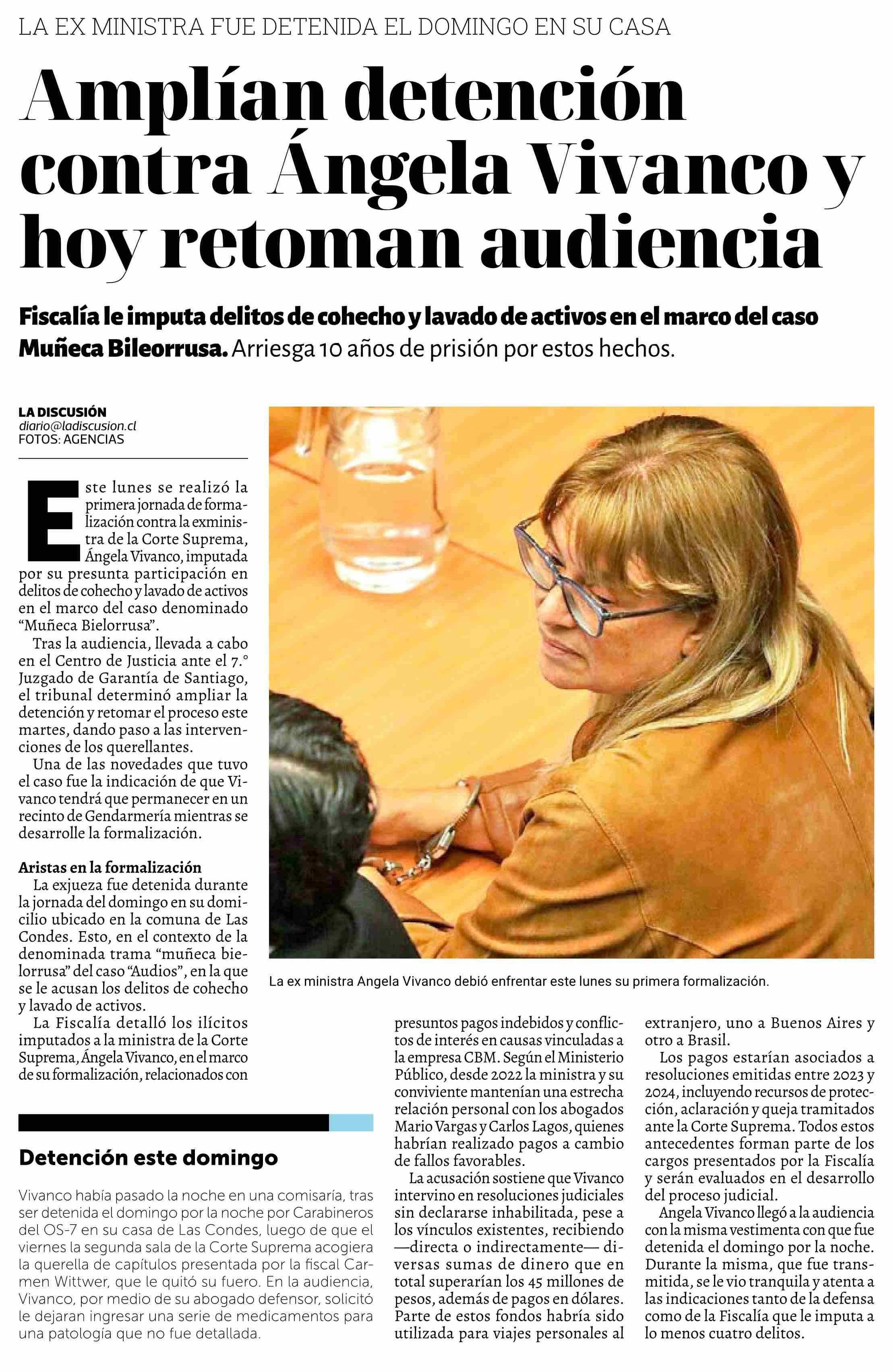 Título: Amplían detención contra Angela Vivanco y hoy retoman audiencia