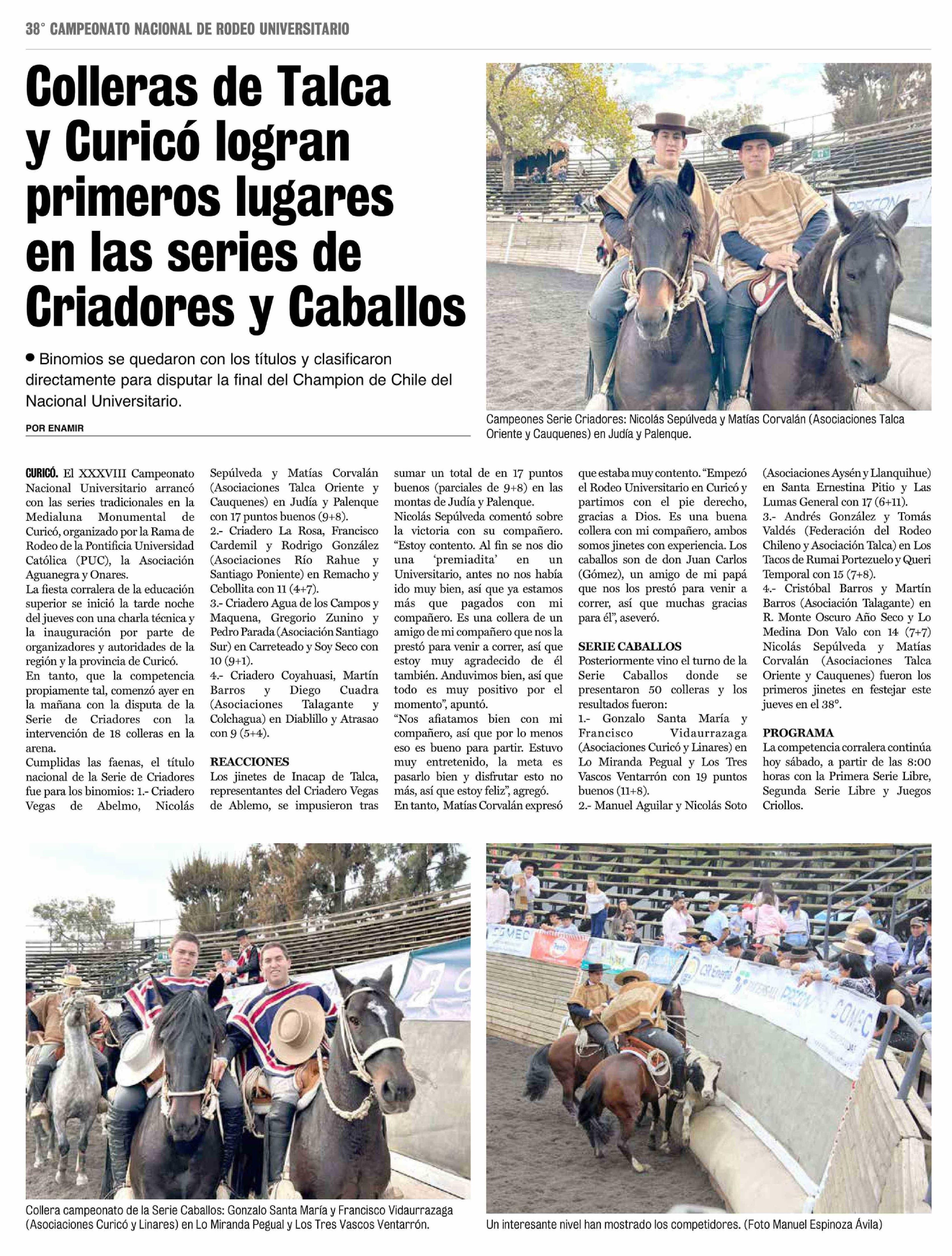 Título: Colleras de Talca y Curicó logran primeros lugares en las series de Criadores y Caballos