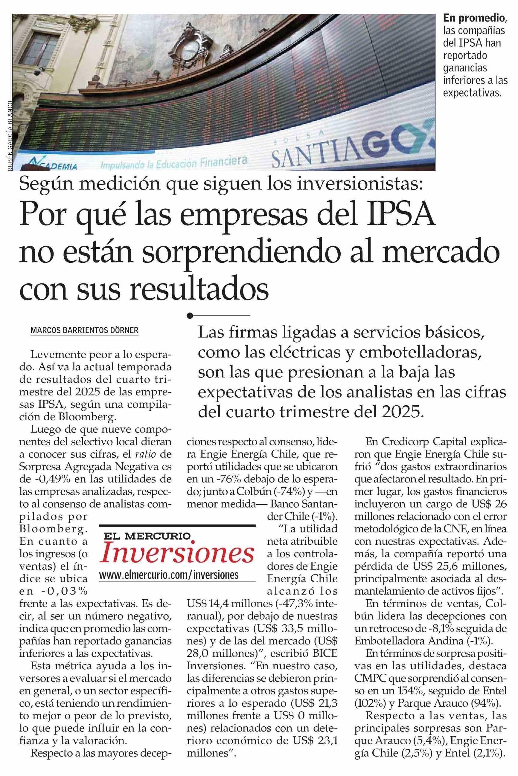 Título: Por qué las empresas del IPSA no están sorprendiendo al mercado con sus resultados