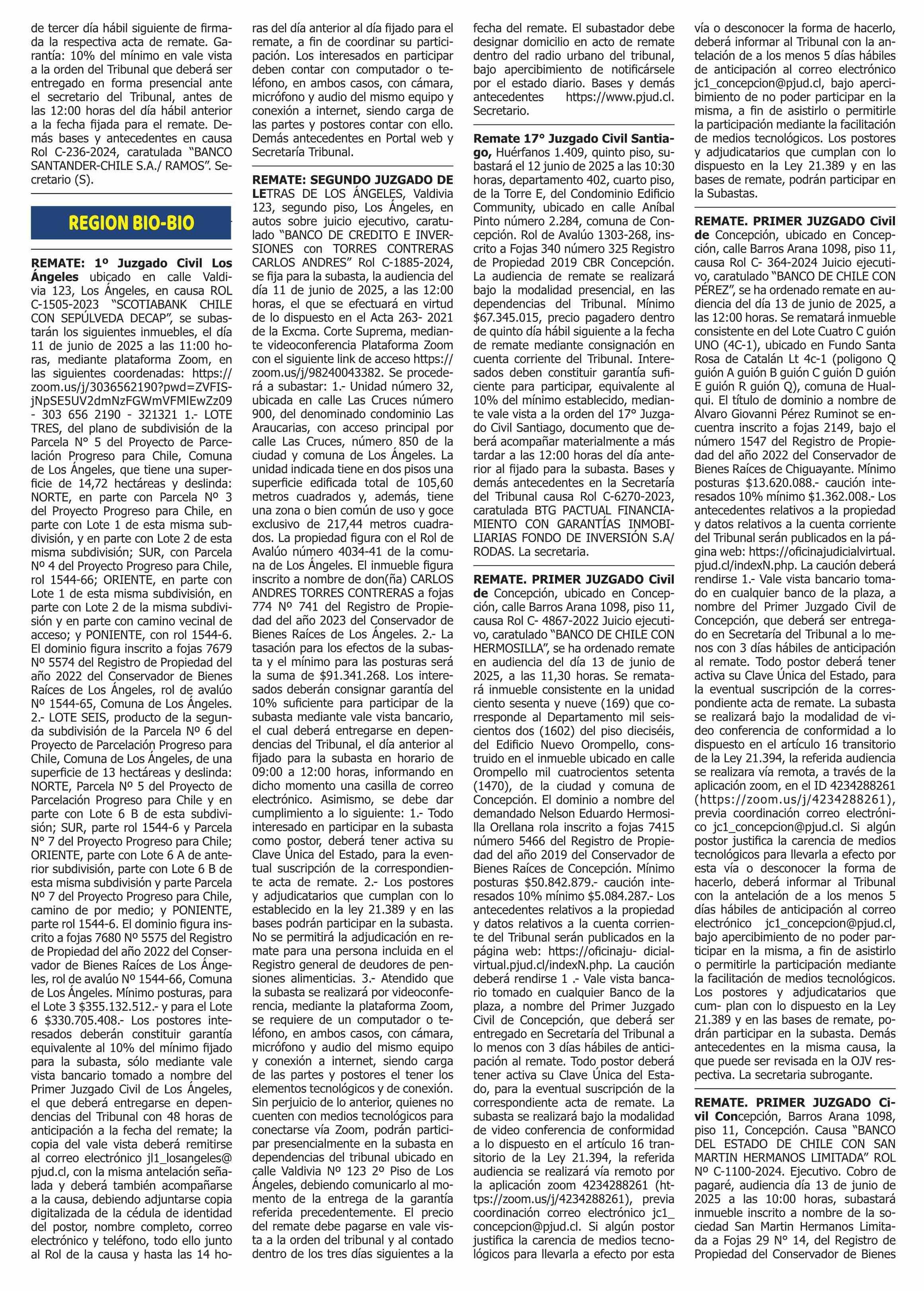 REMATES: REMATES de PROPIEDADES (Ordenados Por Regiones 08-06-2025 P&L Públicos y Legales |