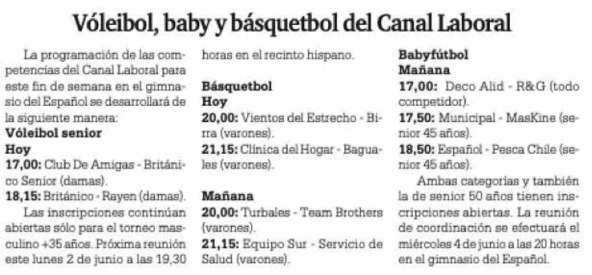Vóleibol, baby y básquetbol del Canal Laboral 31-05-2025 La Prensa Austral |