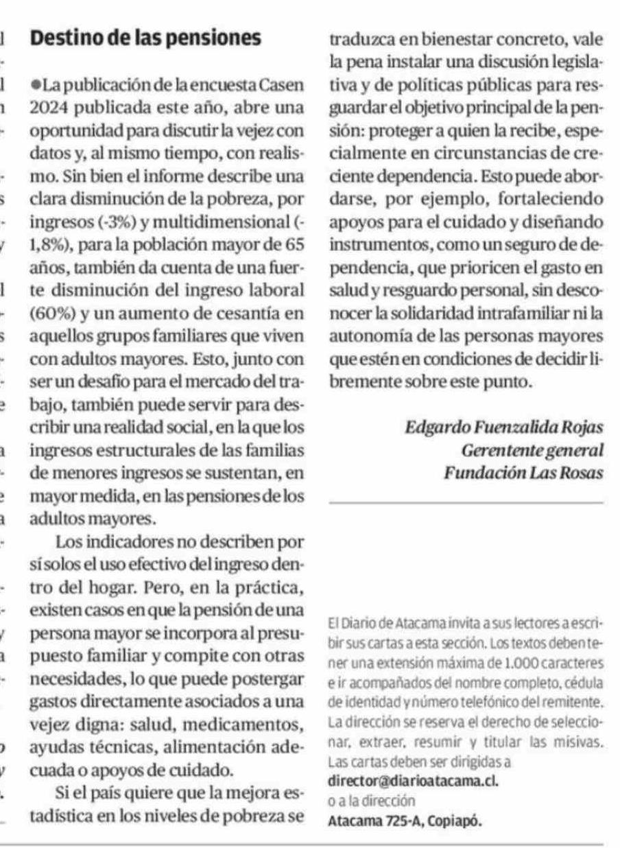 Cartas: Destino de las pensiones 22-02-2026 El Diario de Atacama |