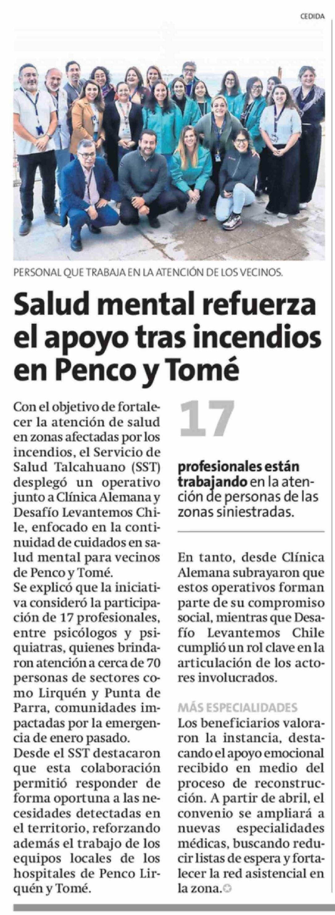 Salud mental refuerza el apoyo tras incendios en Penco y Tomé 25-03-2026 La Estrella de Concepción |