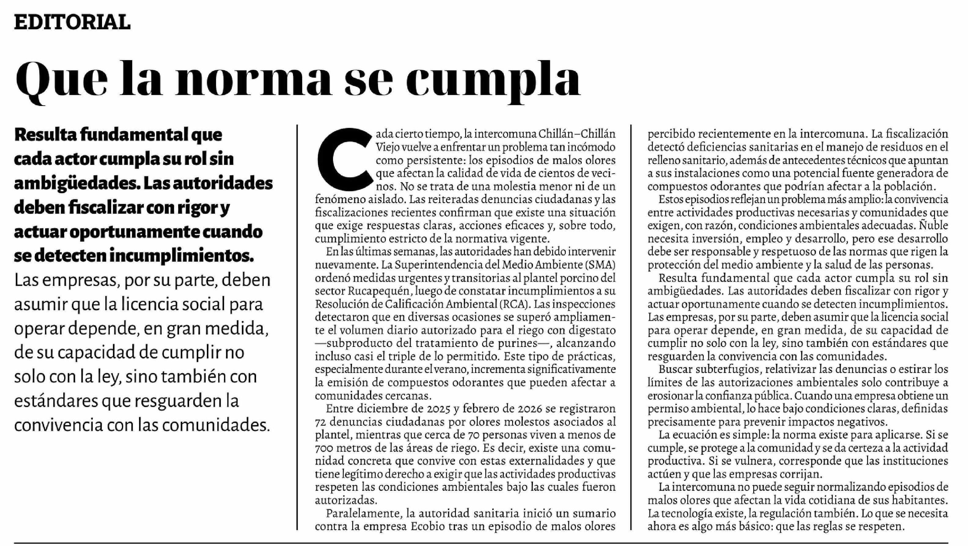 Fecha: 11-03-2026 Sector: Editorial Región: Región del Ñuble