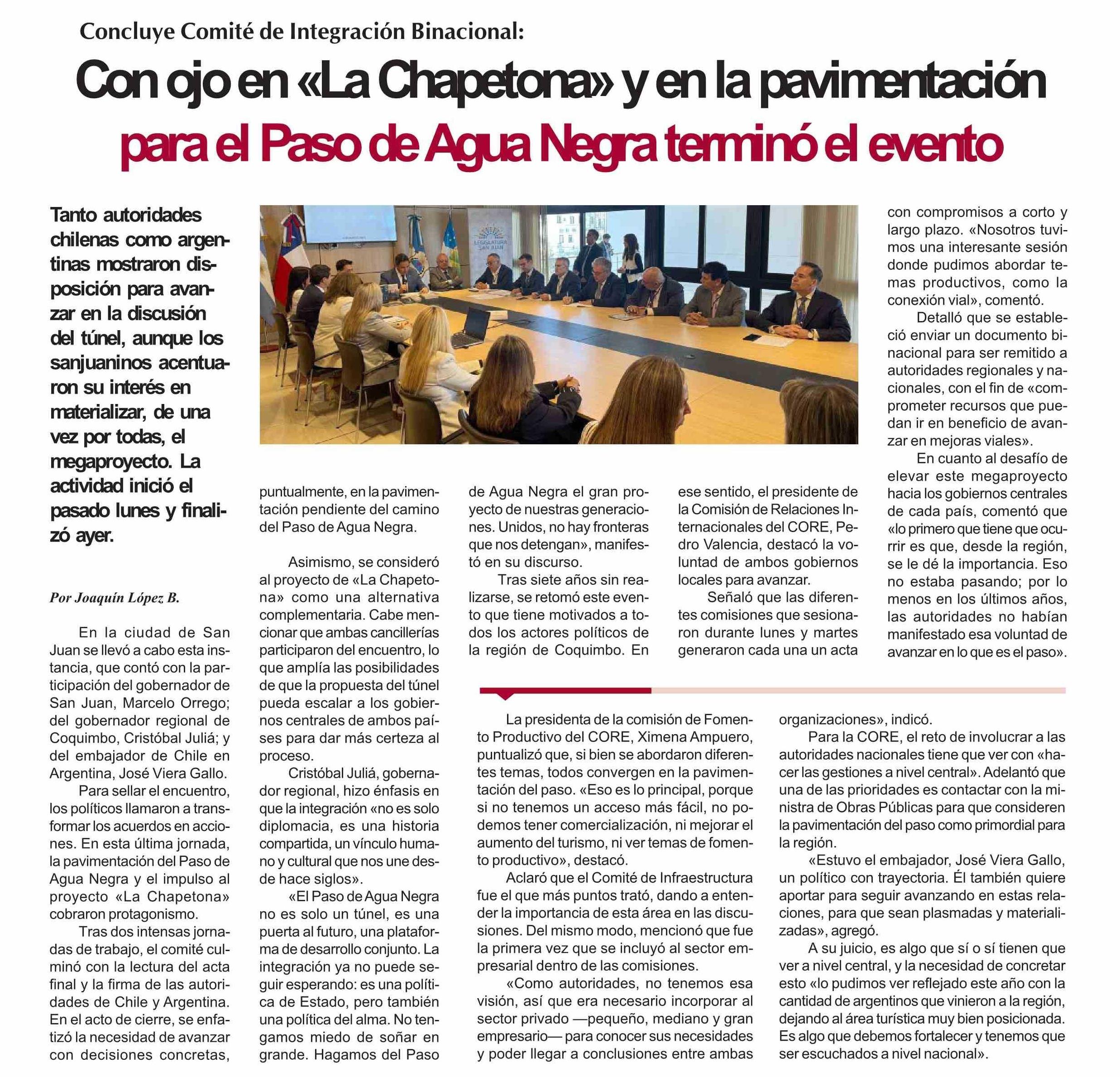 Con ojo en «La Chapetona» y en la pavimentación para el Paso de Agua Negra terminó el evento 16-04-2025 Diario la Región |