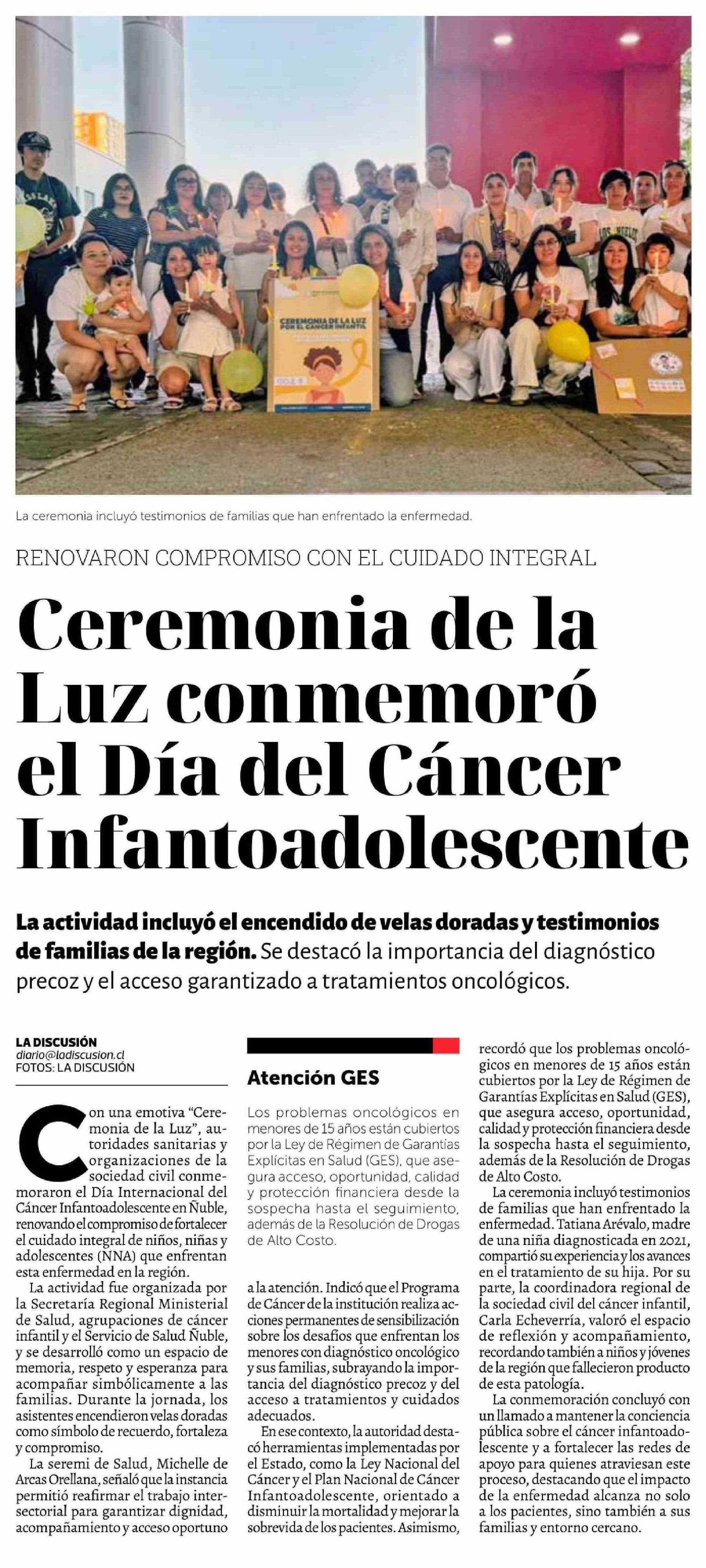 Título: Ceremonia de la Luz conmemoró el Día del Cáncer Infantoadolescente