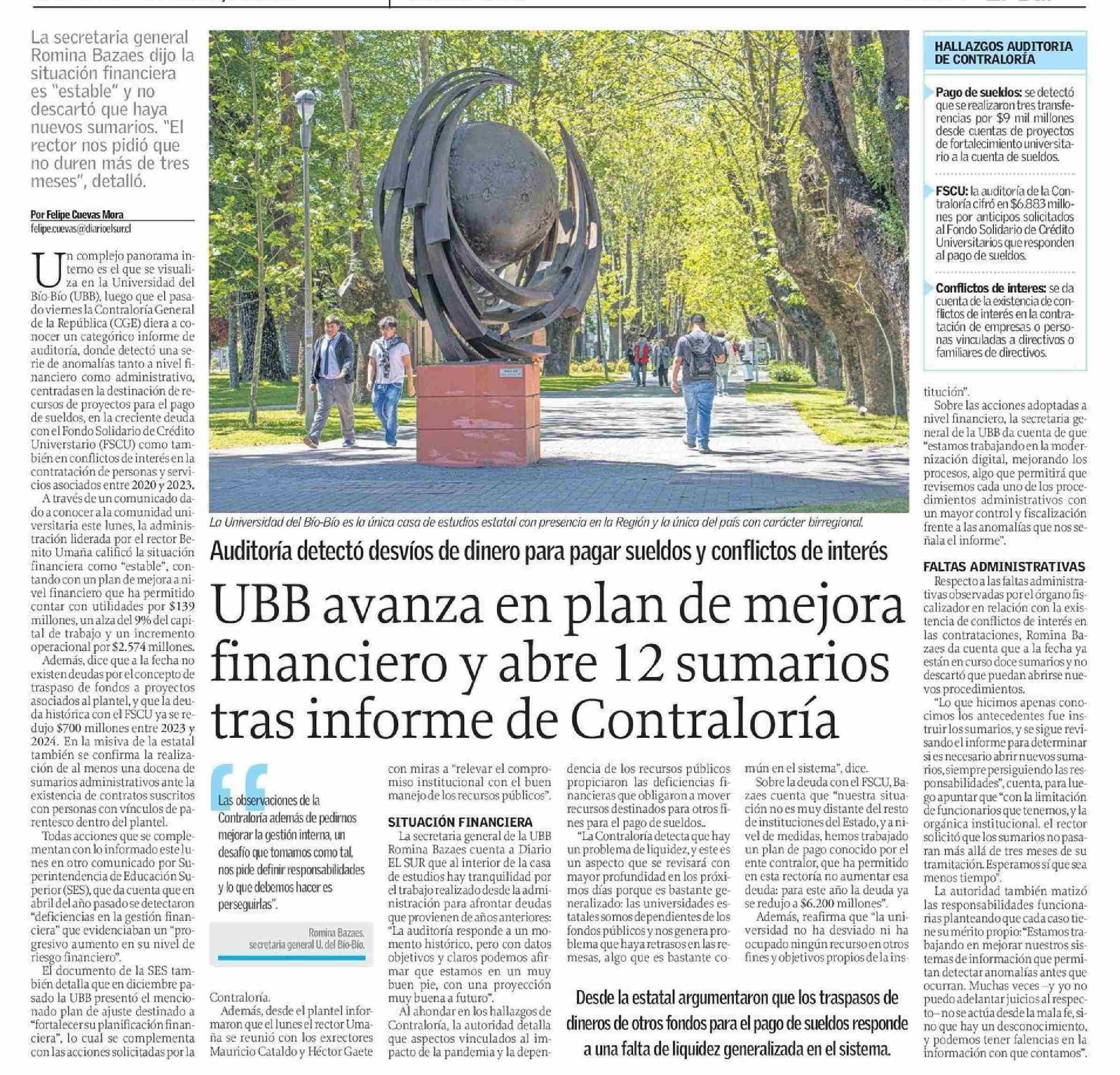 Título: UBB avanza en plan de mejora financiero y abre 12 sumarios tras informe de Contraloría