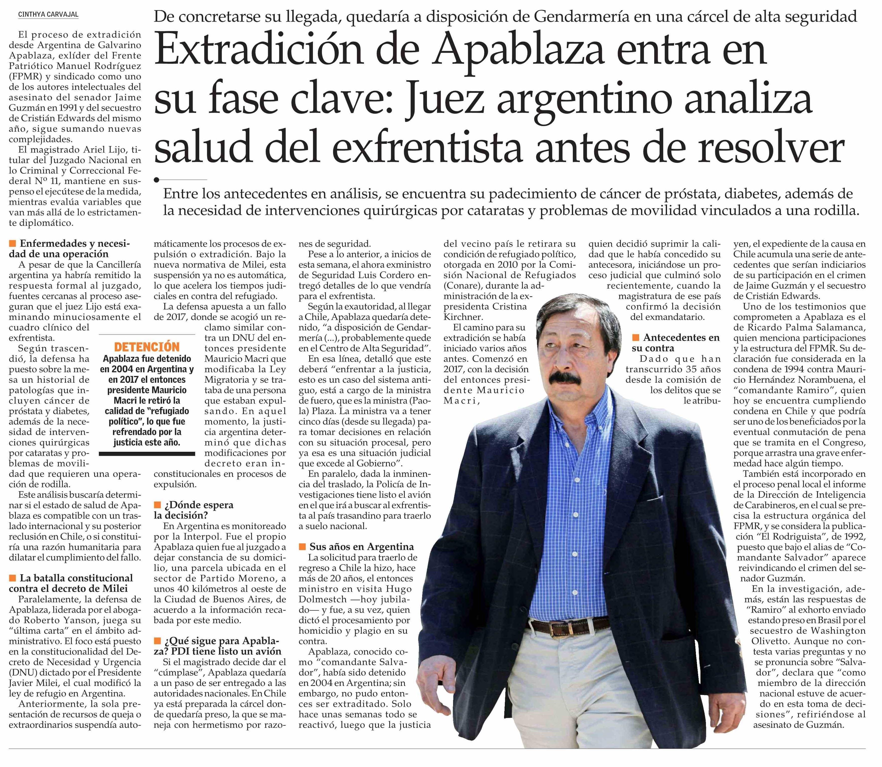 Título: Extradición de Apablaza entra en su fase clave: Juez argentino analiza salud del exfrentista antes de resolver