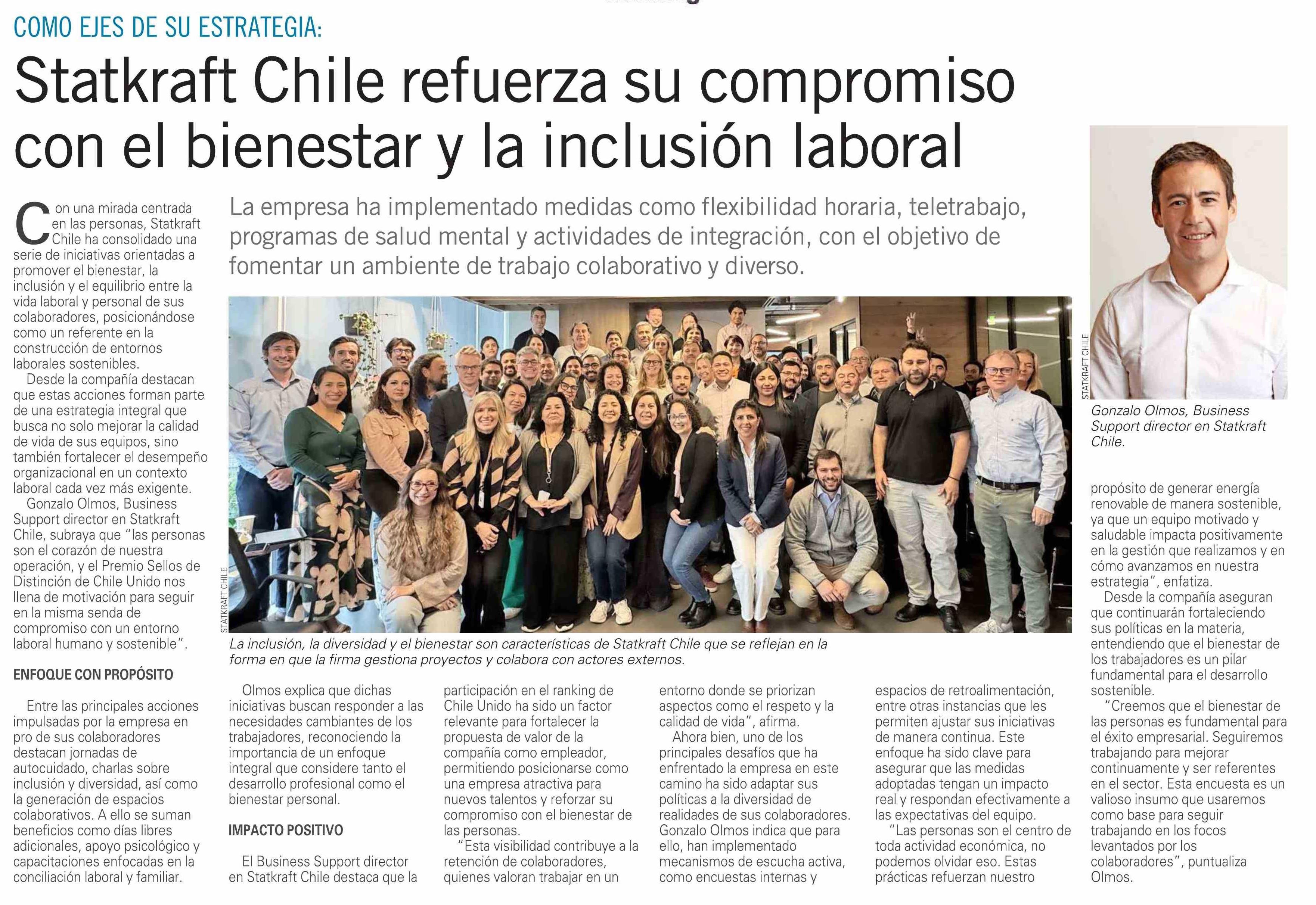 Statkraft Chile refuerza su compromiso con el bienestar y la inclusión laboral 17-04-2026 El Mercurio |
