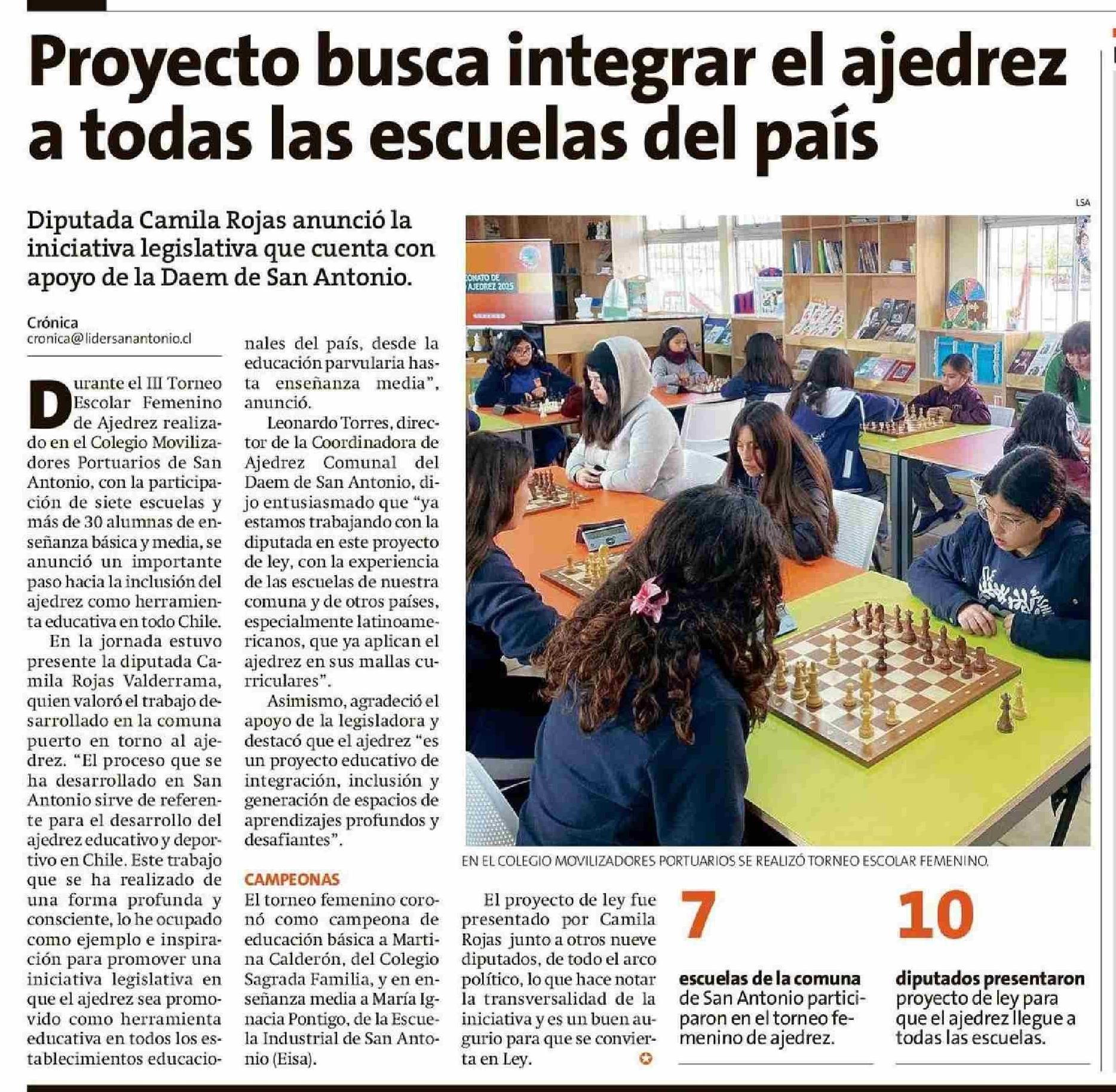 Proyecto busca integrar el ajedrez a todas las escuelas del país 08-06-2025 El Líder |