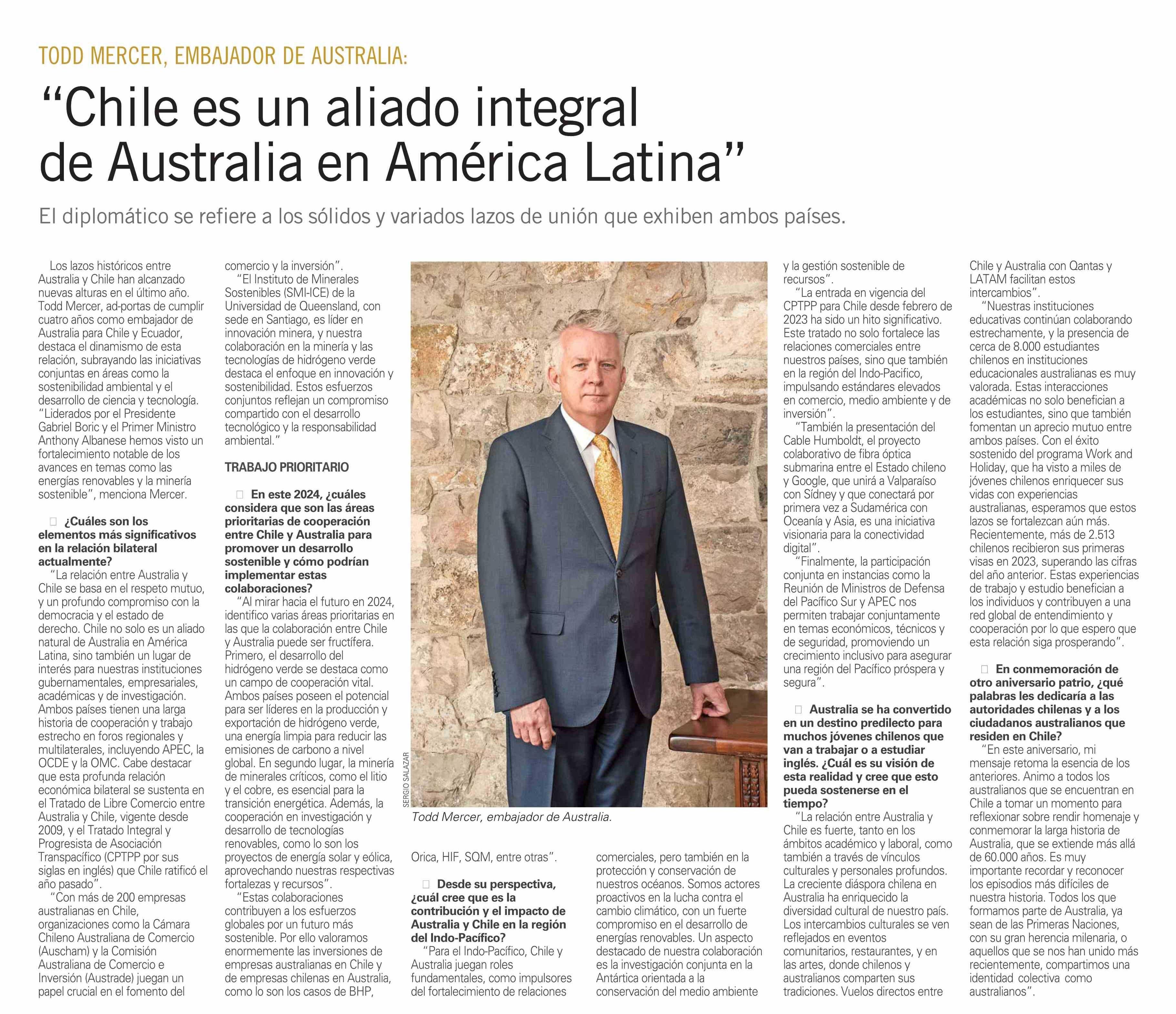 "Chile es un aliado integral de Australia en América Latina" 24-01-2024 El Mercurio |