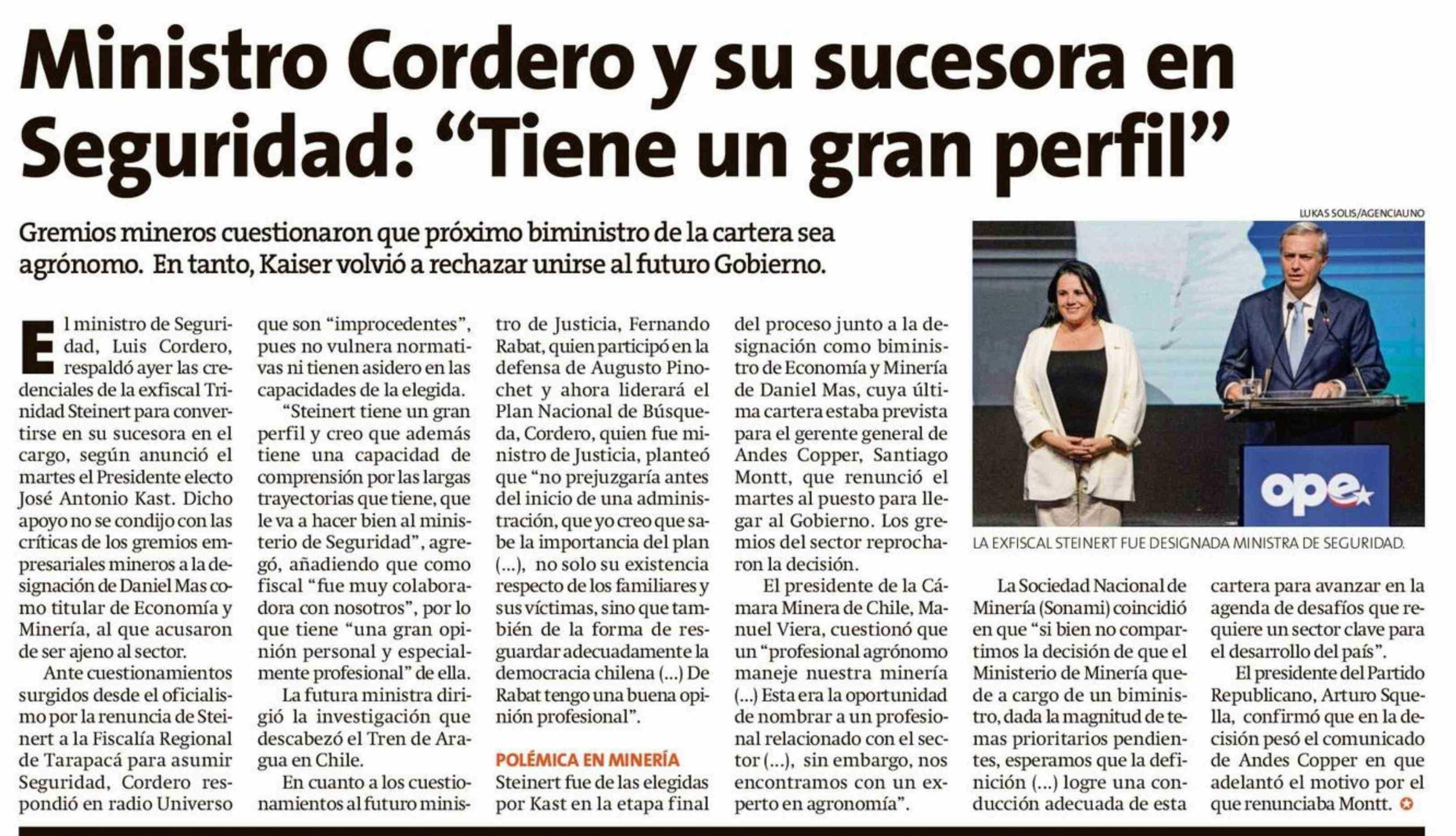 Título: Ministro Cordero y su sucesora en Seguridad: "Tiene un gran perfil"