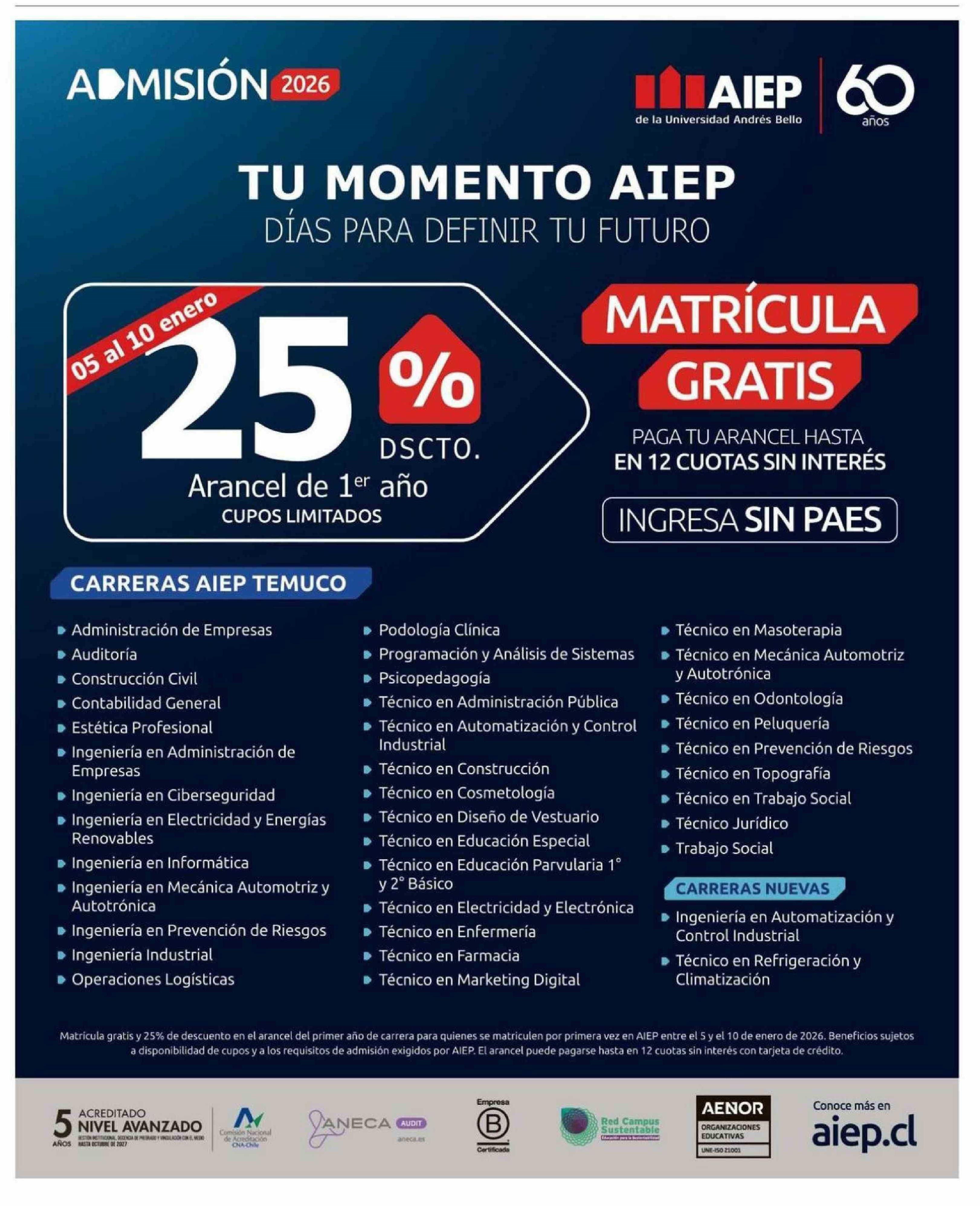 Aviso Universidad: AIEP 05-01-2026 El Austral de la Araucanía |