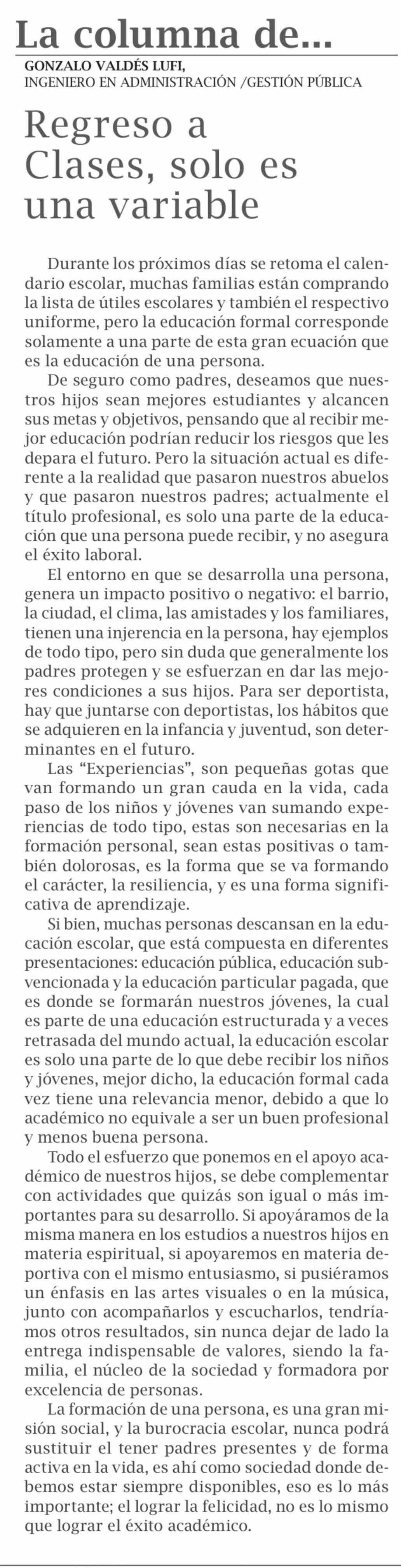Columnas de Opinión: Regreso a Clases, solo es una variable 03-03-2026 El Pingüino |