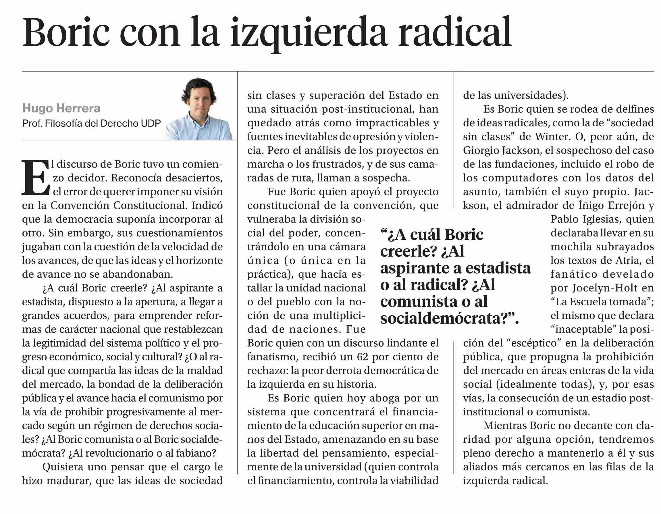 | Título: | COLUMNAS DE OPINIÓN: Boric con la izquierda radical |