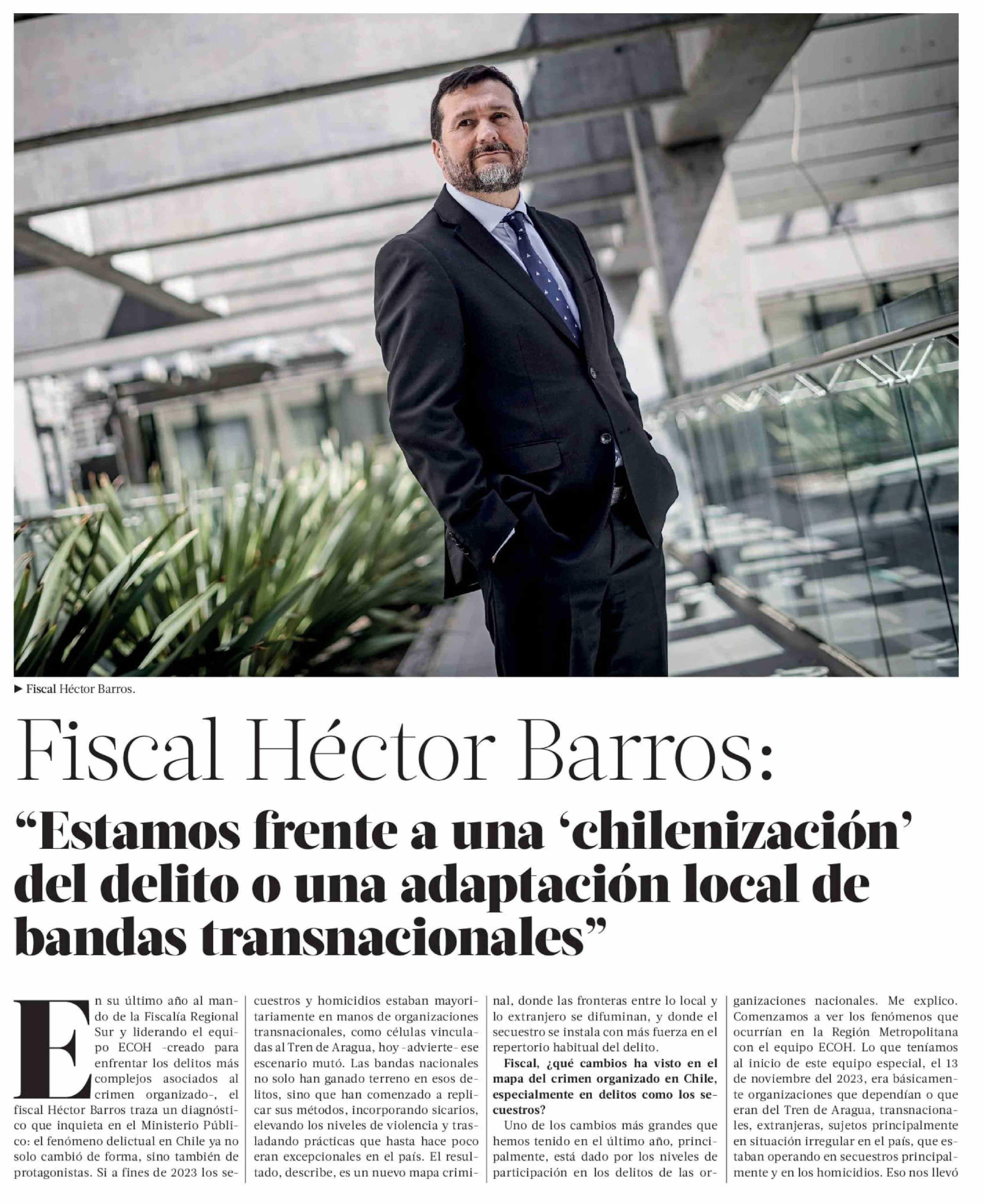 | Título: | Fiscal Héctor Barros: "Estamos frente a una 'chilenización' del delito o una adaptación local de bandas transnacionales" |
