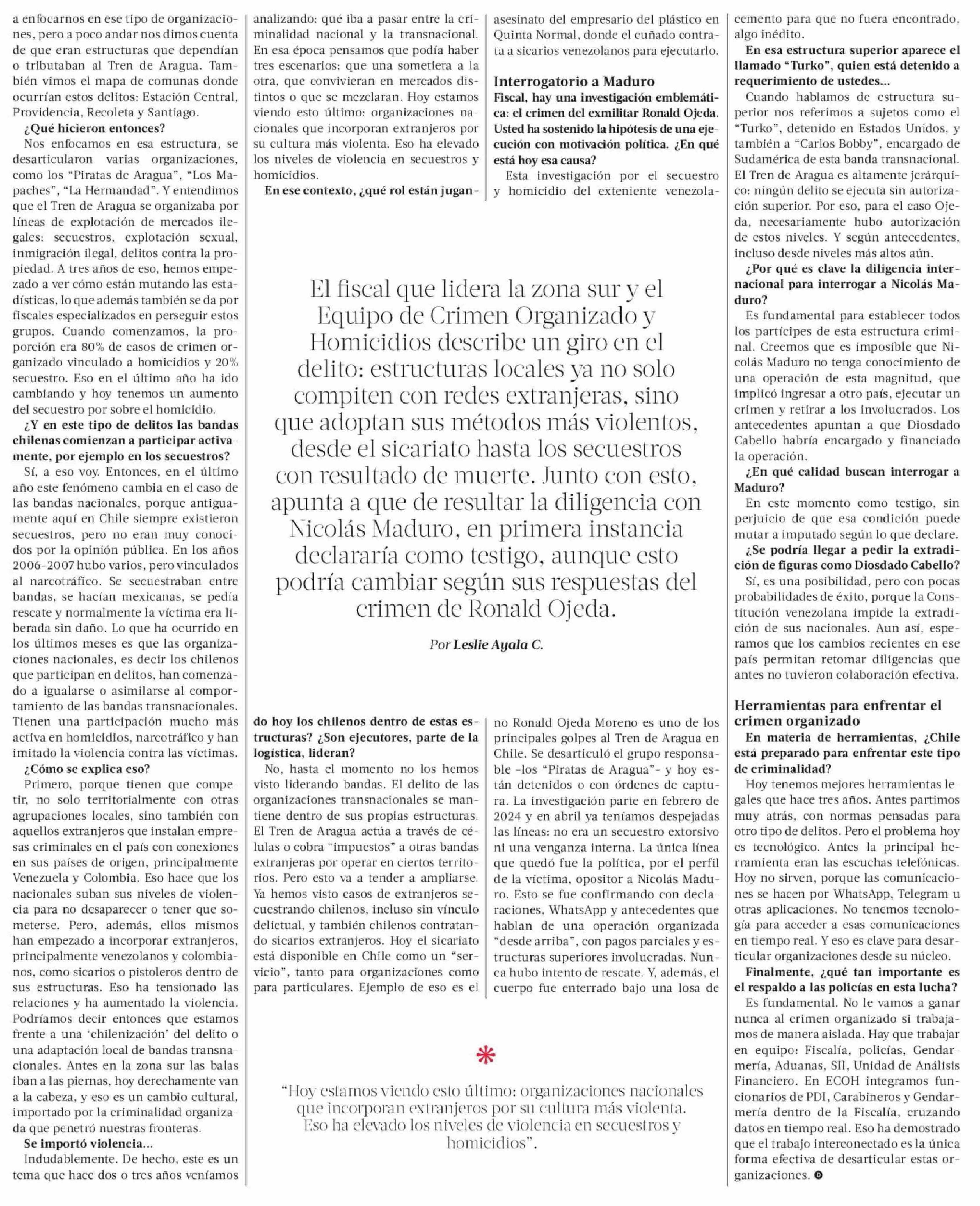 Fiscal Héctor Barros: "Estamos frente a una 'chilenización' del delito o una adaptación local de bandas transnacionales" 05-04-2026 La Tercera |