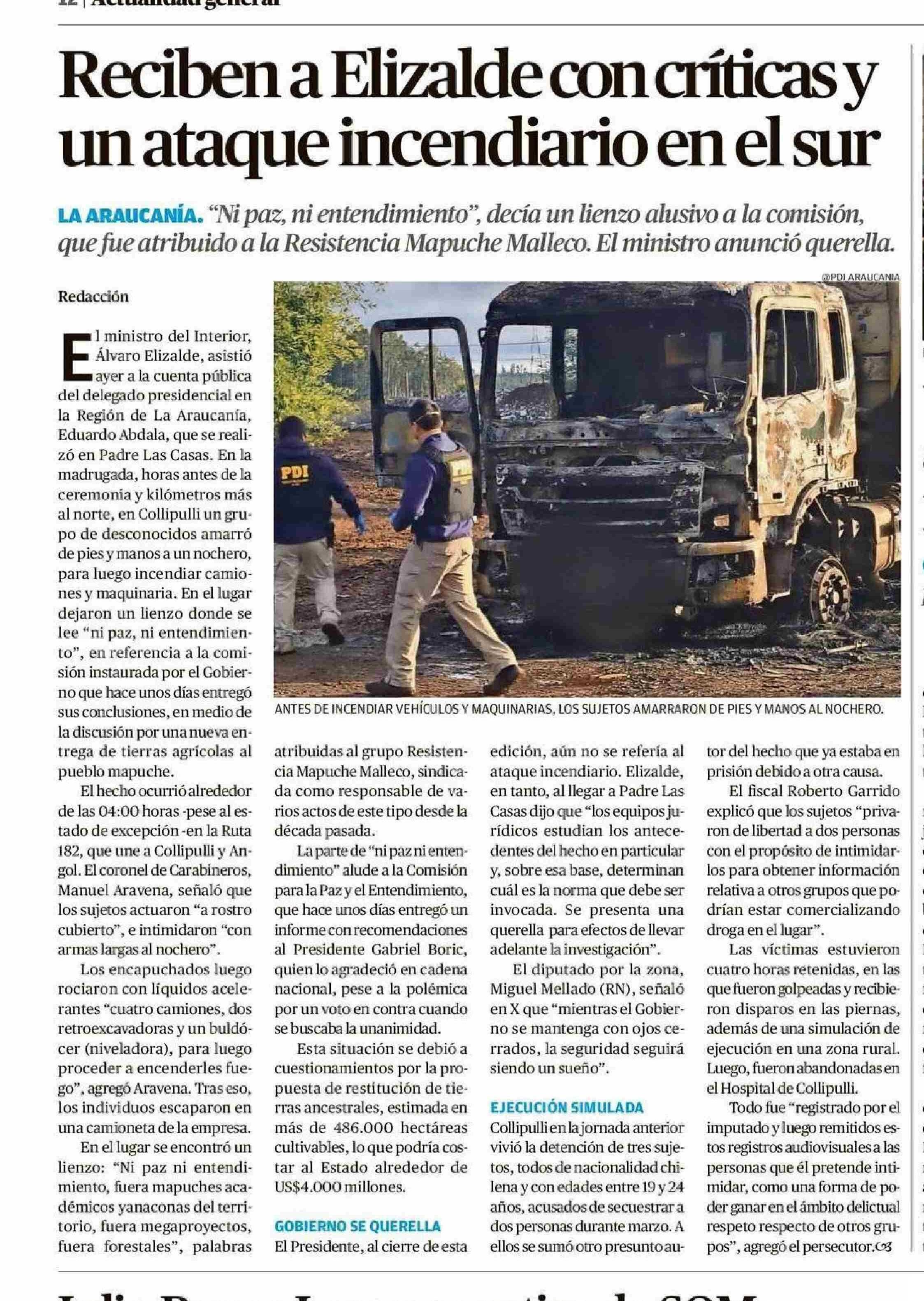 Reciben a Elizalde con críticas y un ataque incendiario en el sur 06-06-2025 Diario Austral Región de Los Ríos |