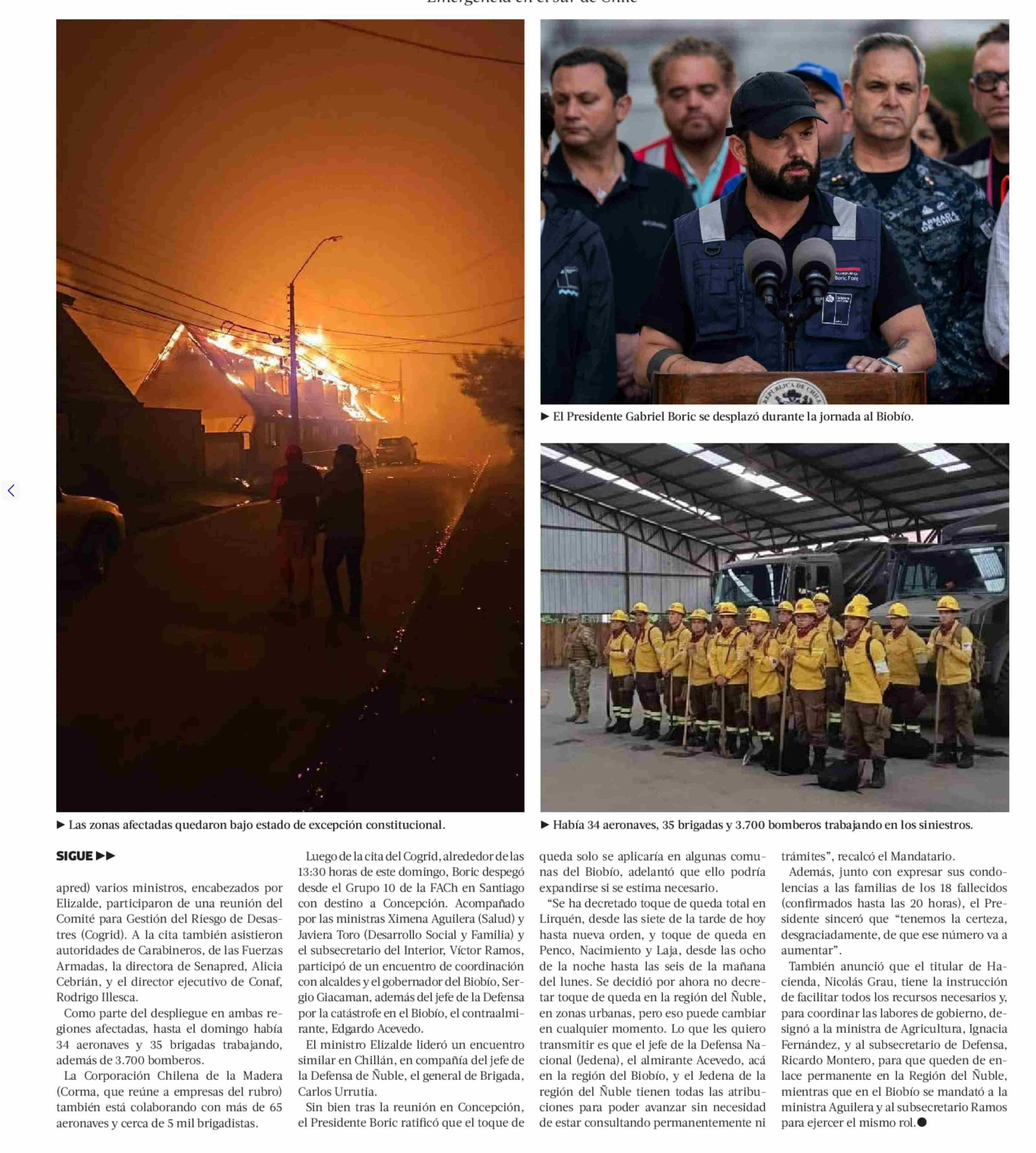 | Título: | A semanas del fin de su mandato, Boric enfrenta nuevo megaincendio que ha dejado 18 fallecidos |