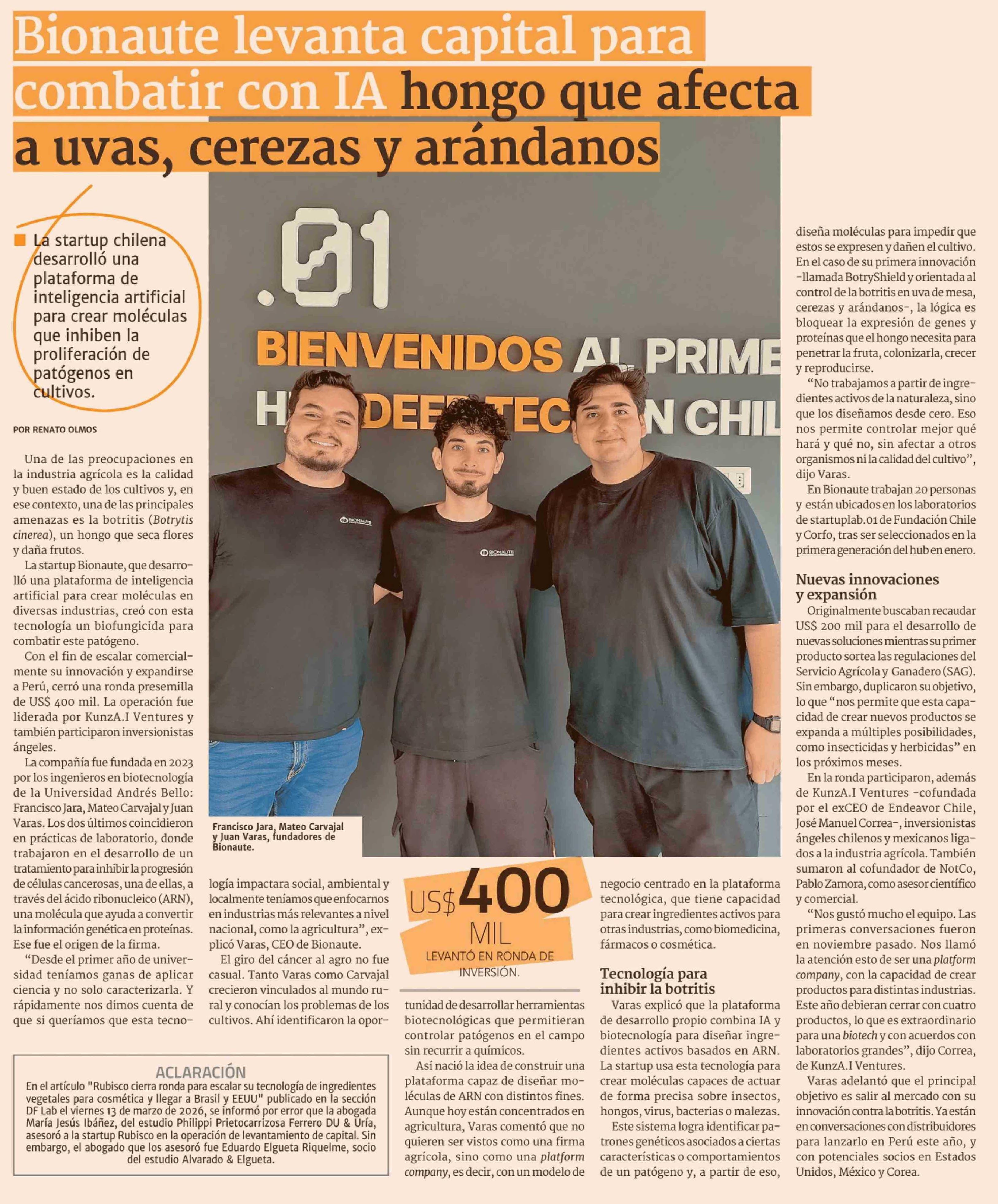 Título: Bionaute levanta capital para combatir con IA hongo que afecta a uvas, cerezas y arándanos