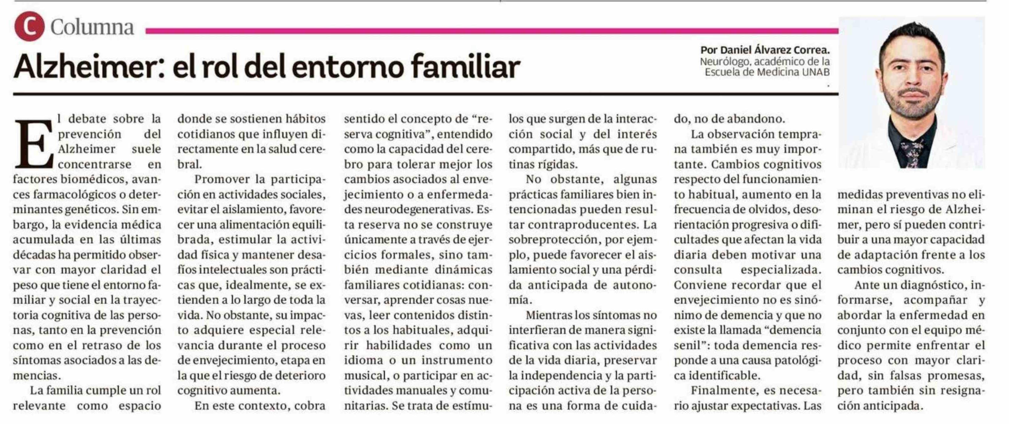 Título: Columnas de Opinión: Alzheimer: el rol del entorno familiar