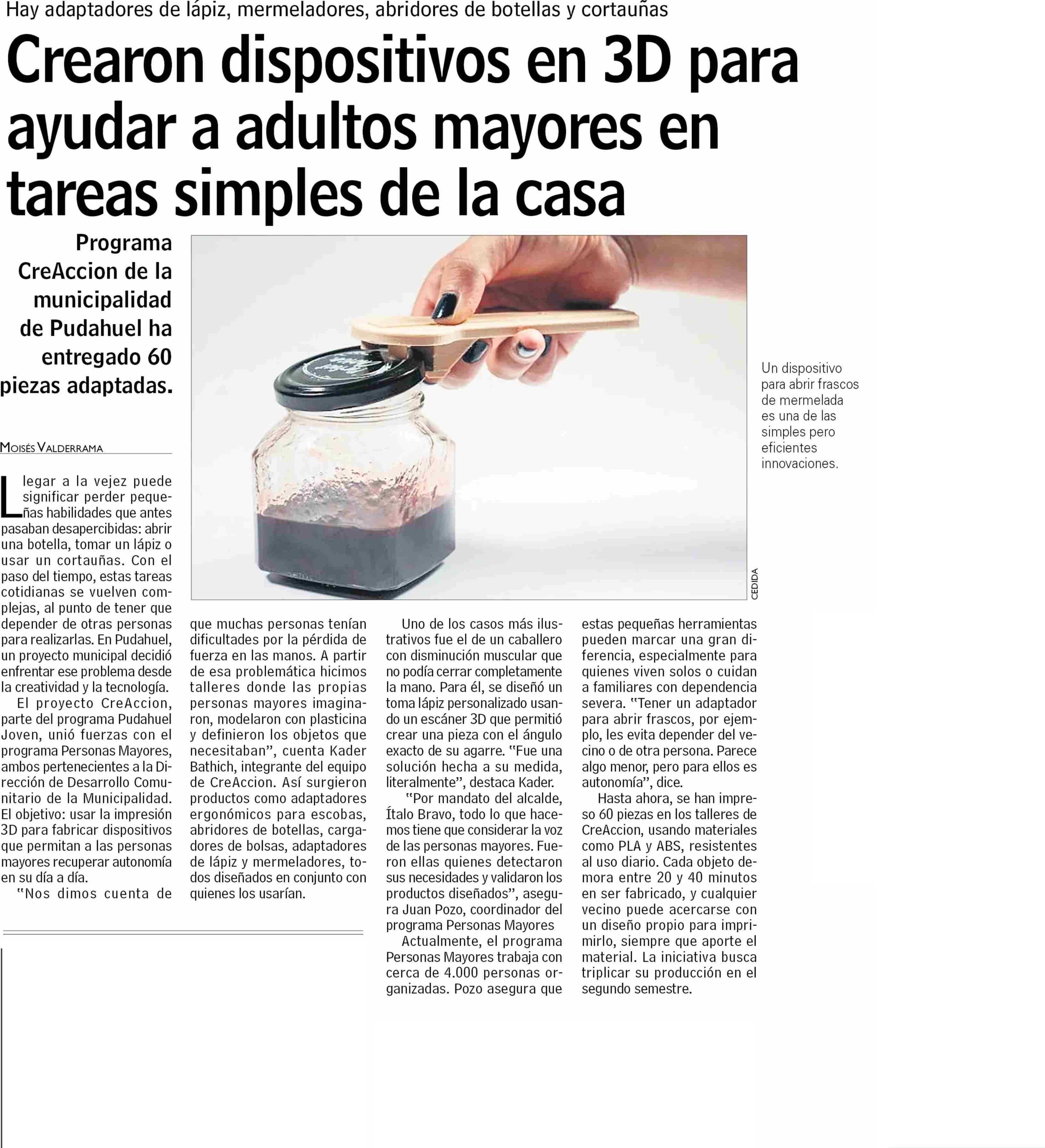 | Título: | Crearon dispositivos en 3D para ayudar a adultos mayores en tareas simples de la casa |