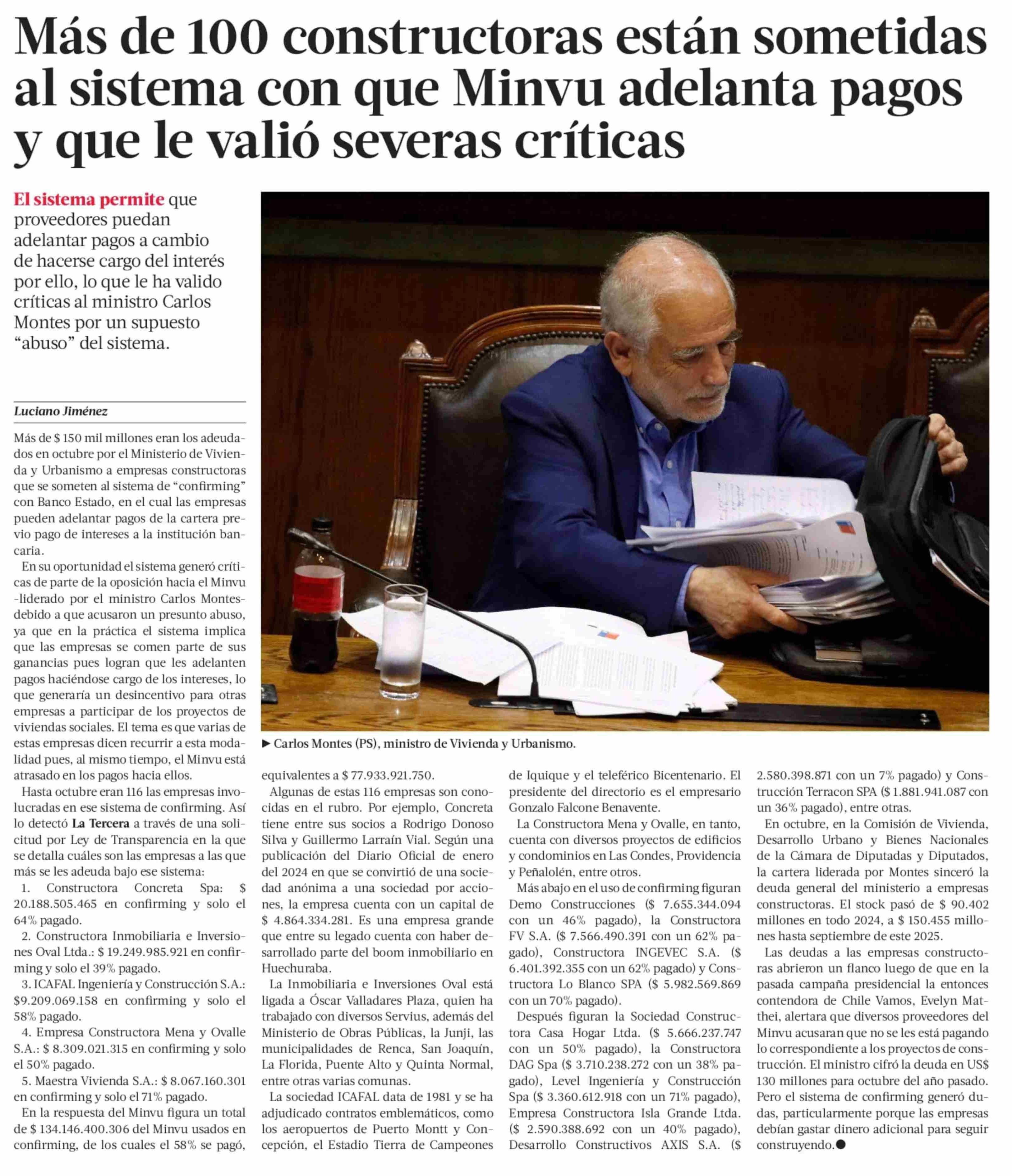 Título: Más de 100 constructoras están sometidas al sistema con que Minvu adelanta pagos y que le valió severas críticas