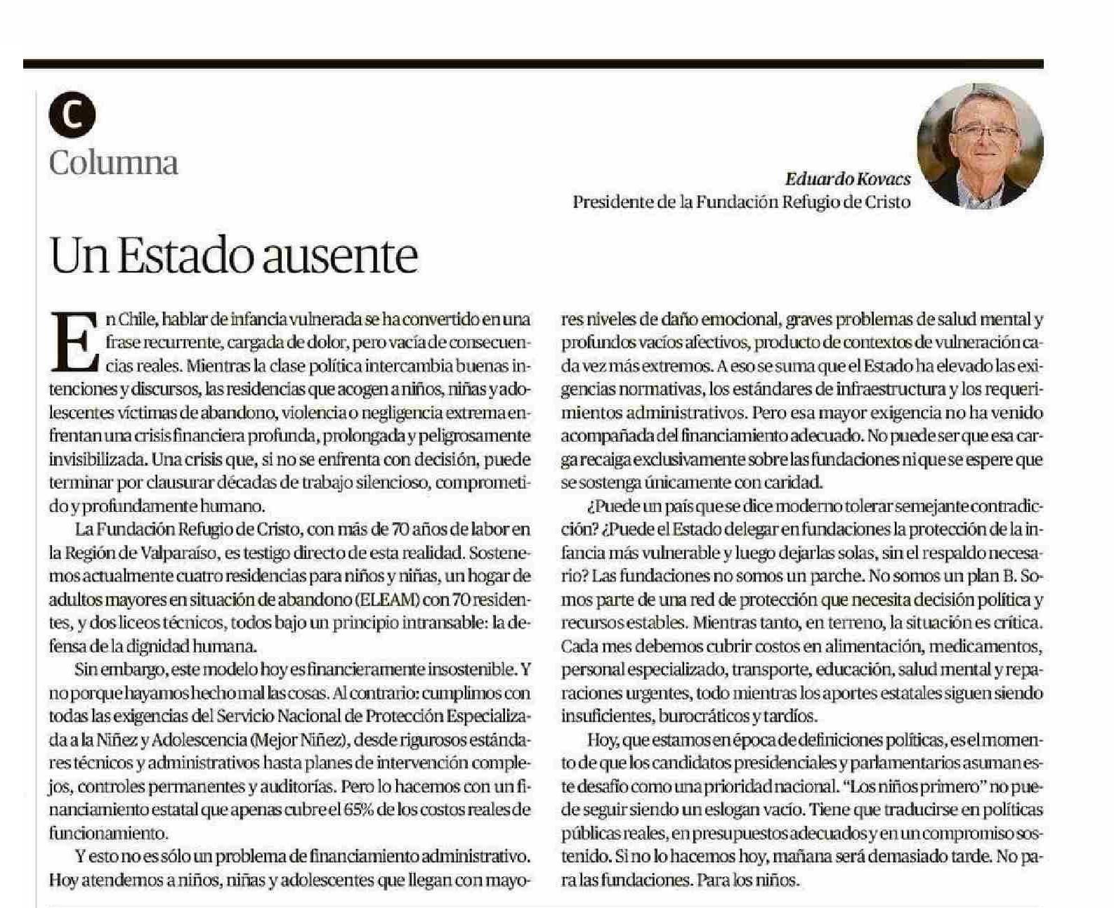 COLUMNAS DE OPINIÓN: Un Estado ausente 18-05-2025 El Mercurio de Valparaíso |