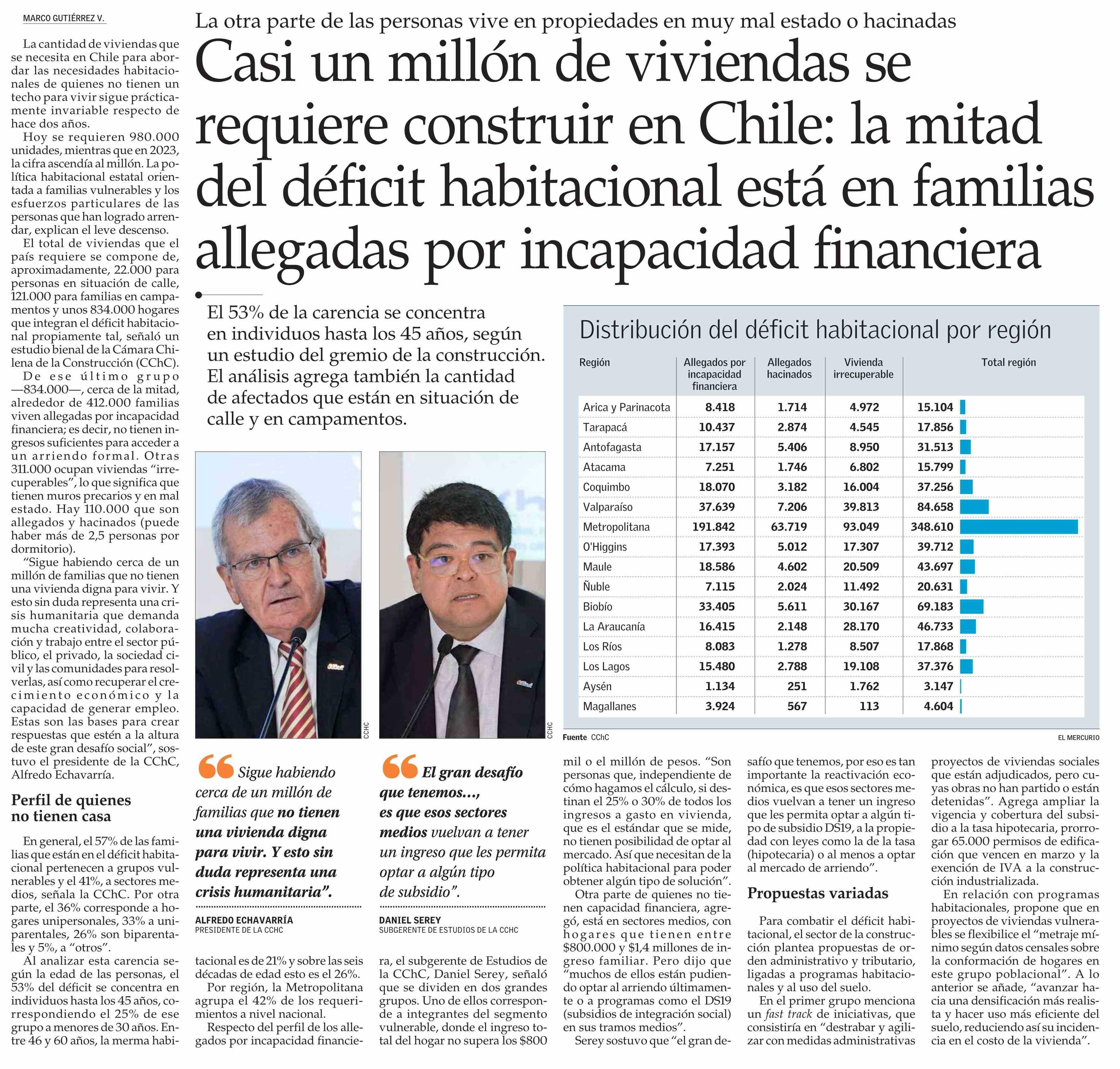 Título: Casi un millón de viviendas se requiere construir en Chile: la mitad del déficit habitacional está en familias allegadas por incapacidad financiera