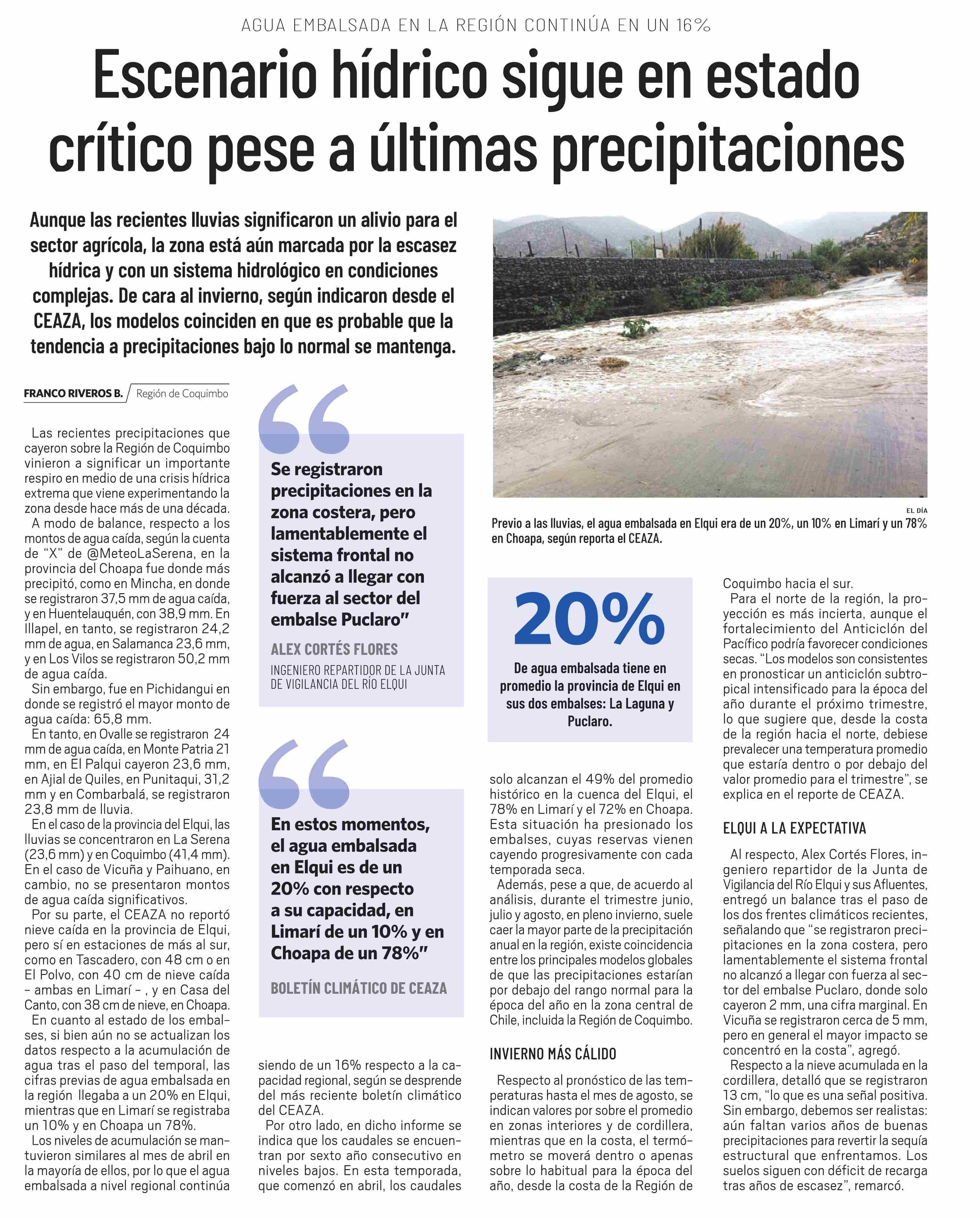 Escenario hídrico sigue en estado crítico pese a últimas precipitaciones 18-06-2025 El Día |