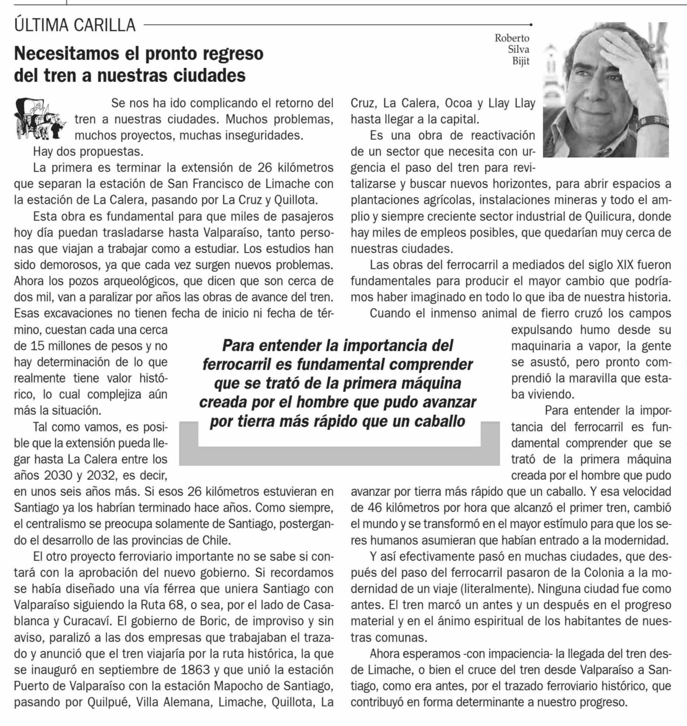| Título: | Columnas de Opinión: Necesitamos el pronto regreso del tren a nuestras ciudades |