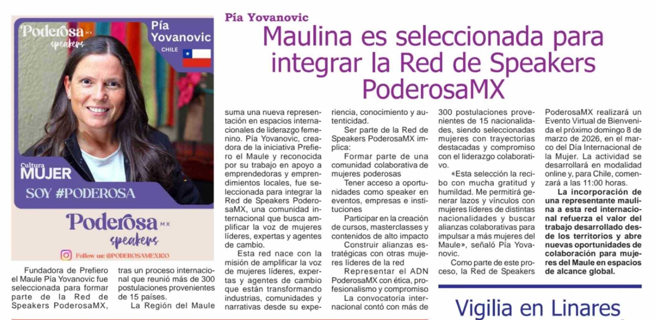 Maulina es seleccionada para integrar la Red de Speakers PoderosaMX 14-02-2026 Maule Hoy |