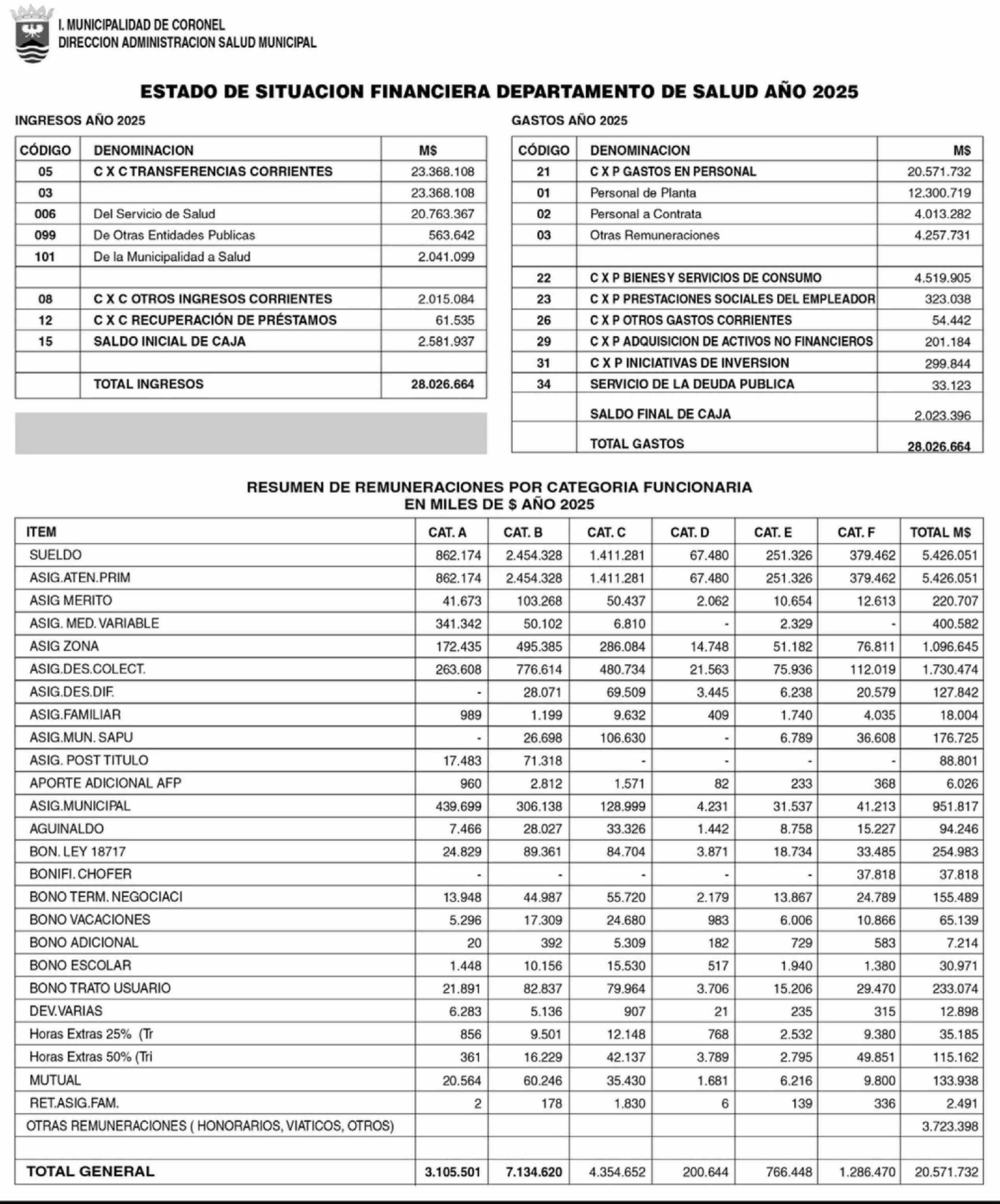 Título: Extractos: ESTADO DE SITUACION FINANCIERA DEPARTAMENTO DE SALUD AÑO 2025