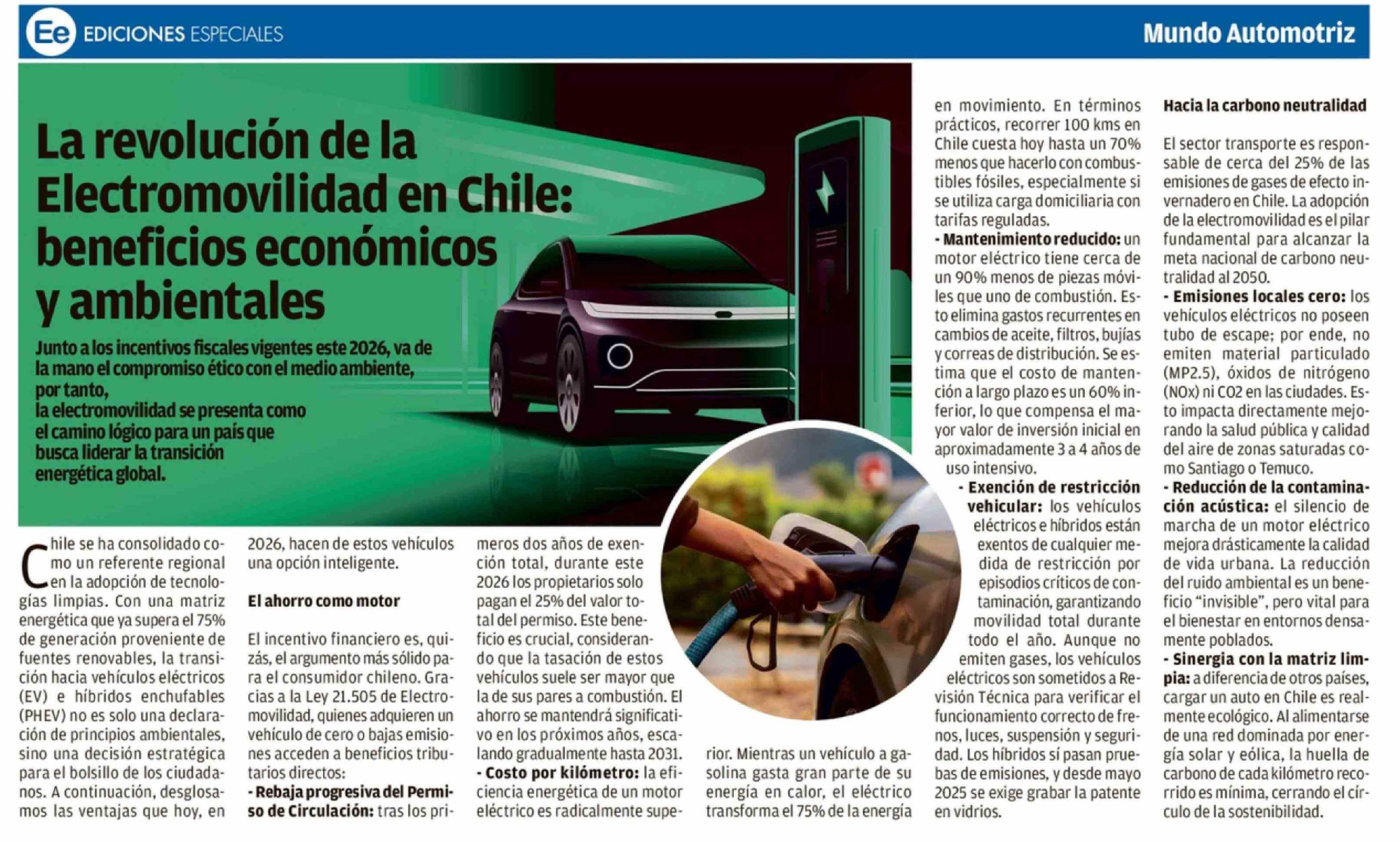 La revolución de la Electromovilidad en Chile: beneficios económicos y ambientales 02-03-2026 El Austral de Osorno |