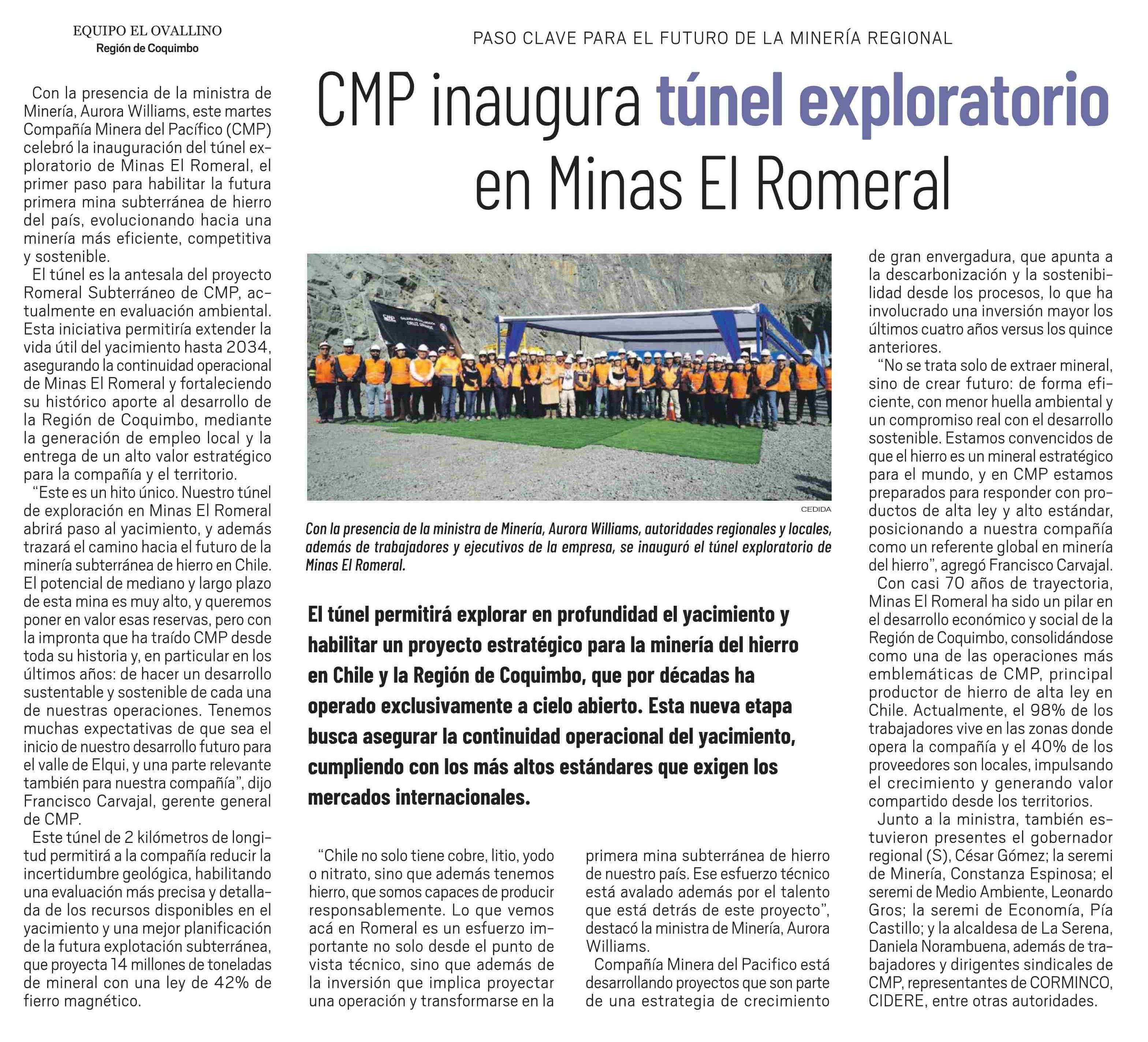 Título: CMP inaugura túnel exploratorio en Minas El Romeral