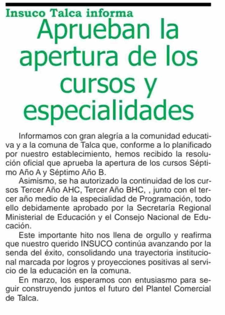 Aprueban la apertura de los cursos y especialidades 17-01-2026 Maule Hoy |
