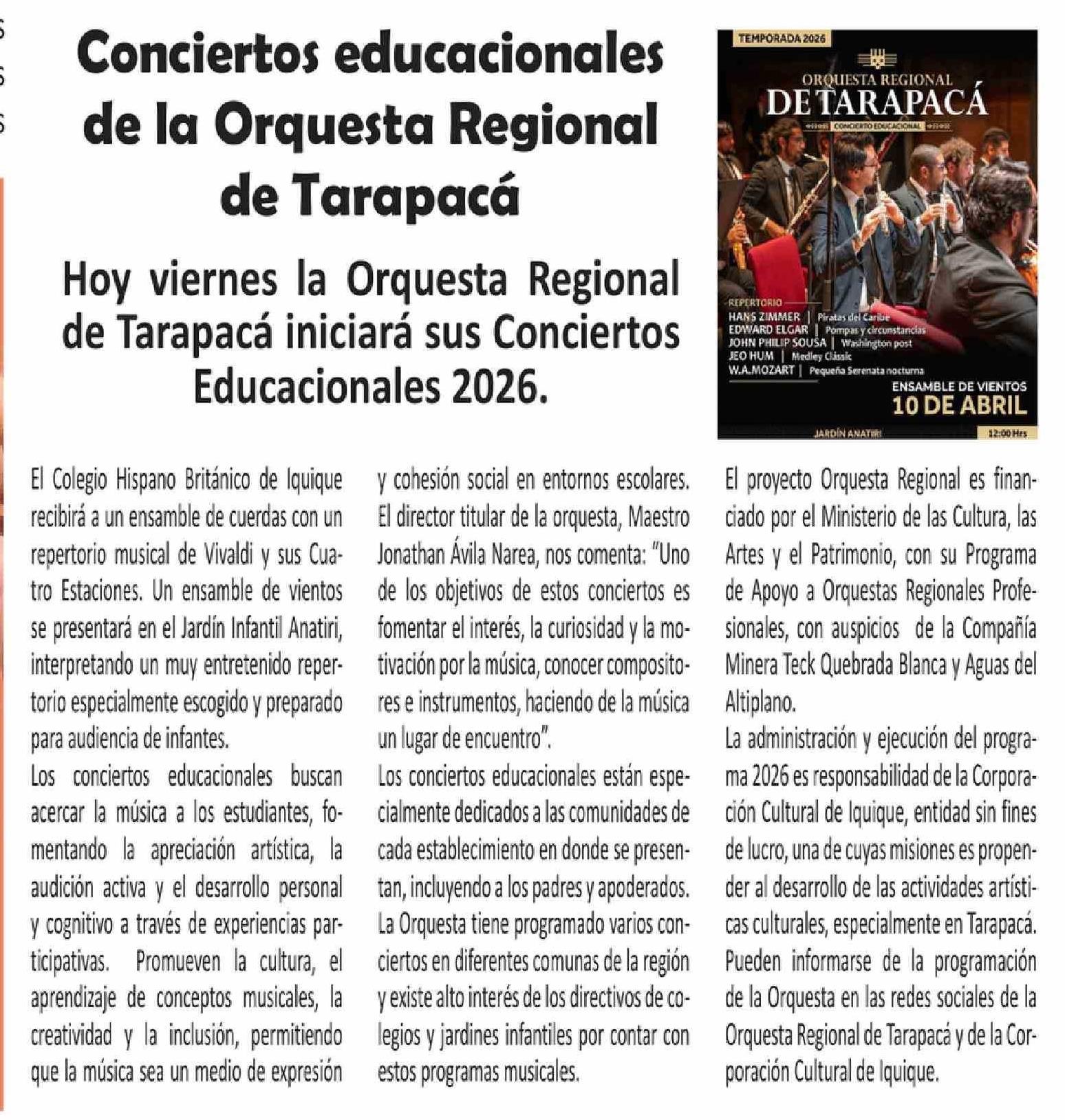 Conciertos educacionales de la Orquesta Regional de Tarapacá