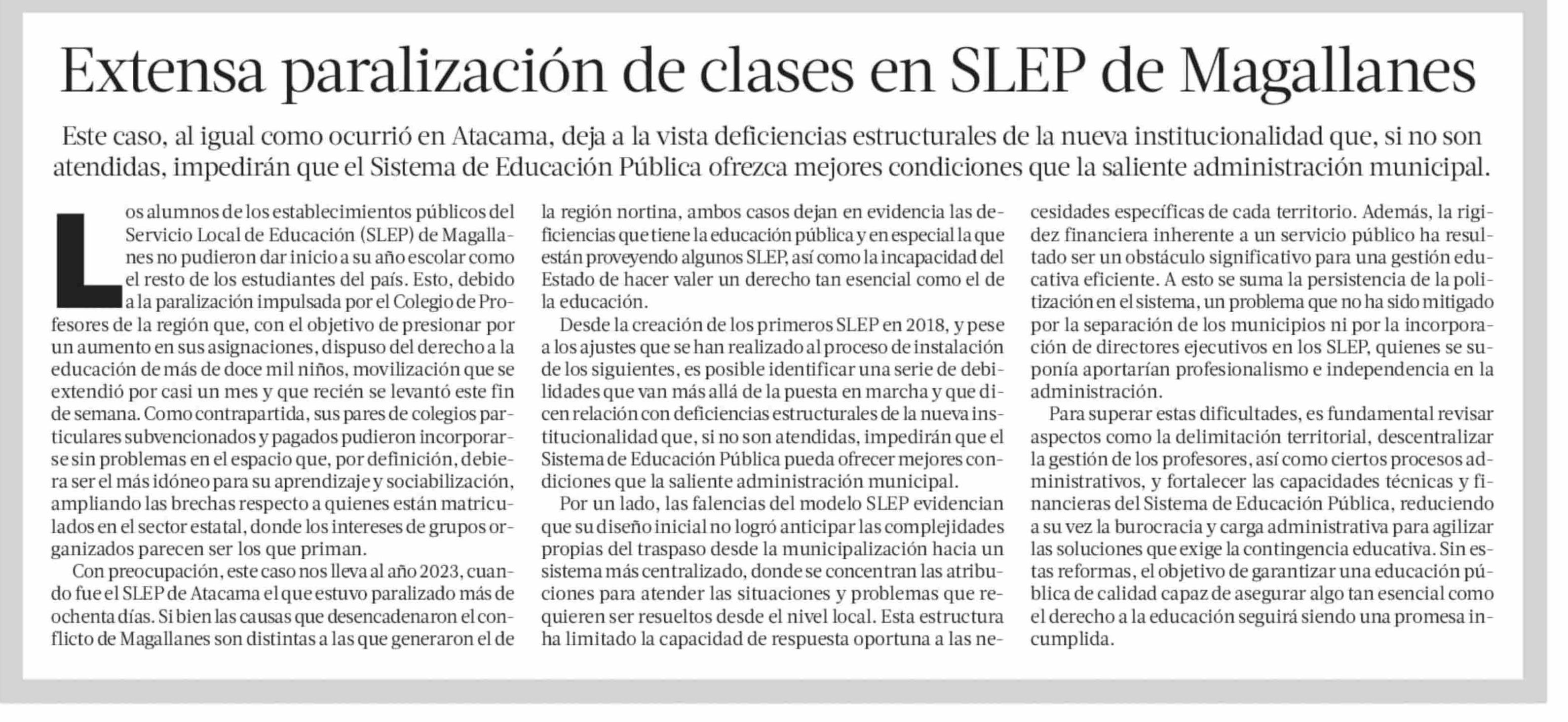 EDITORIAL: Extensa paralización de clases en SLEP de Magallanes 07-04-2025 La Tercera |