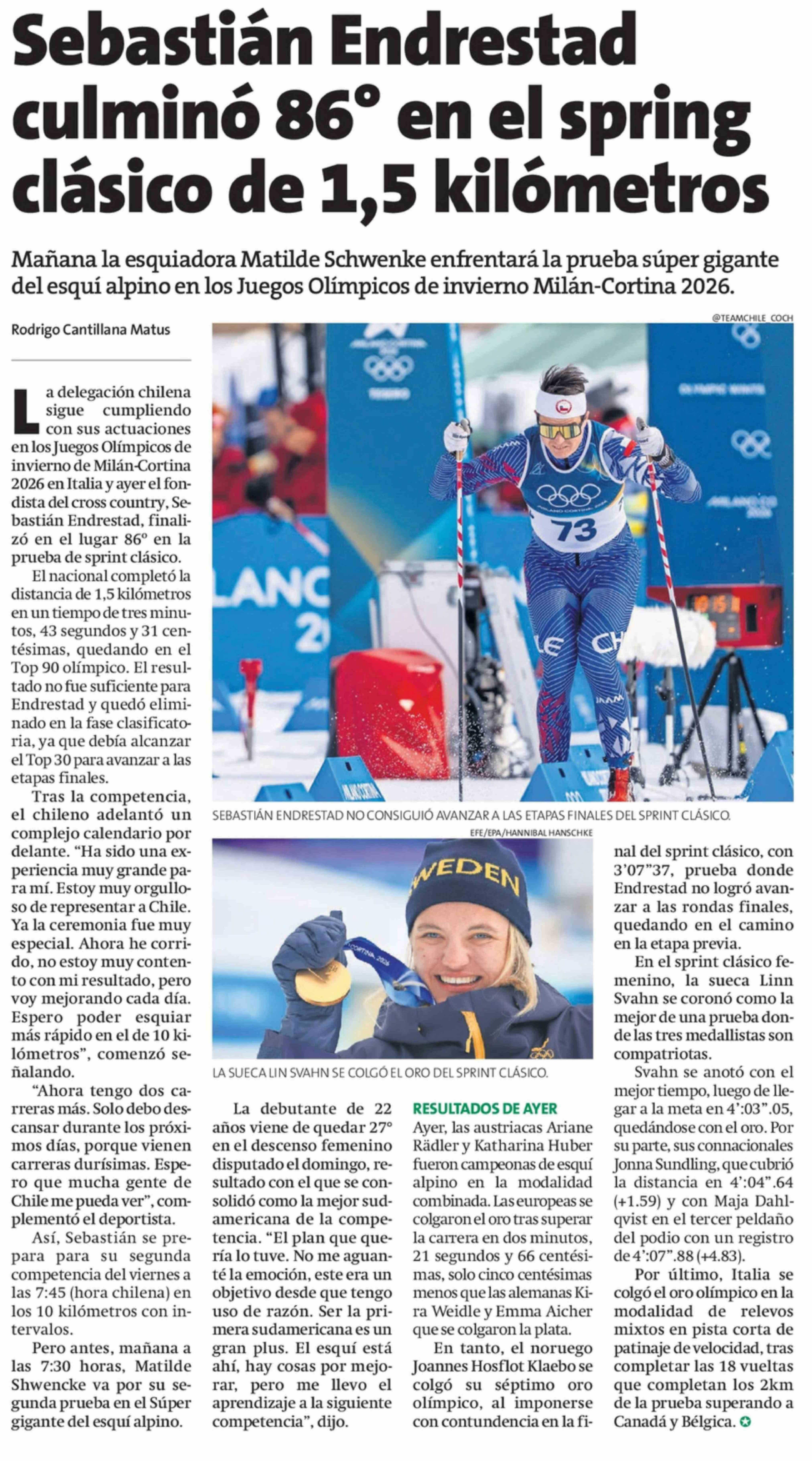 Sebastián Endrestad culminó 86° en el spring clásico de 1,5 kilómetros 11-02-2026 La Estrella de Concepción |