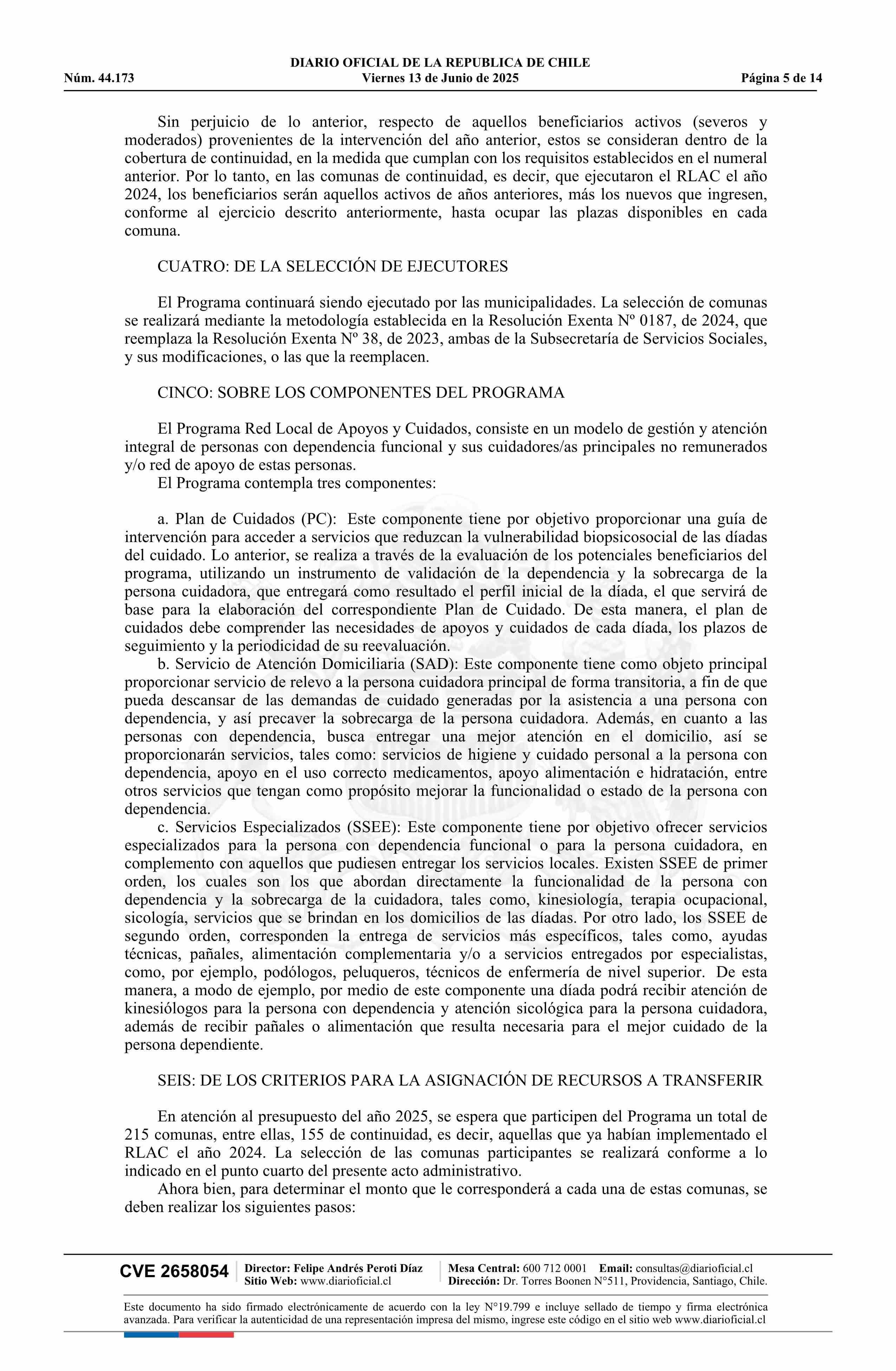 Resolución número 5, de 2025.- Establece la forma de ejecución de los recursos, incluidos los componentes del programa y beneficiarios de la Asignación 24-03-351 Red Local de Apoyos y Cuidados 13-06-2025 DIARIO OFICIAL CHILE - BOLETÍN OFICIAL DE MINERÍA |