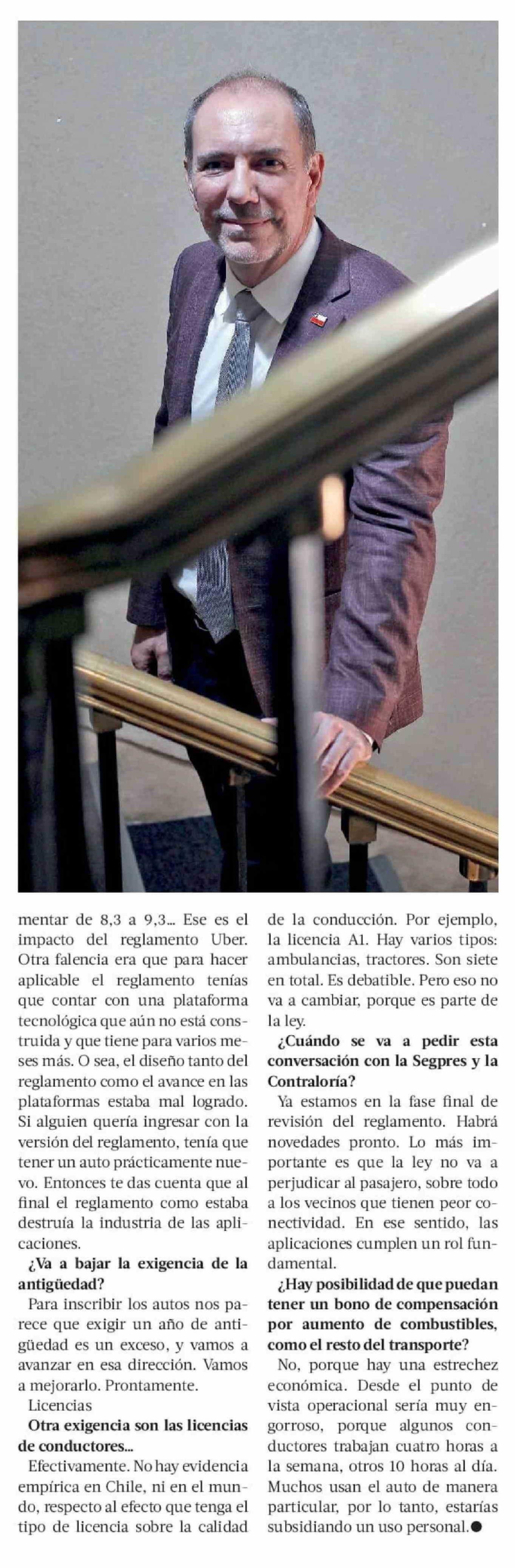 Título: Louis de Grange, ministro de Transportes, anuncia cambios a Ley Uber: "El reglamento como estaba destruía la industria de las aplicaciones"