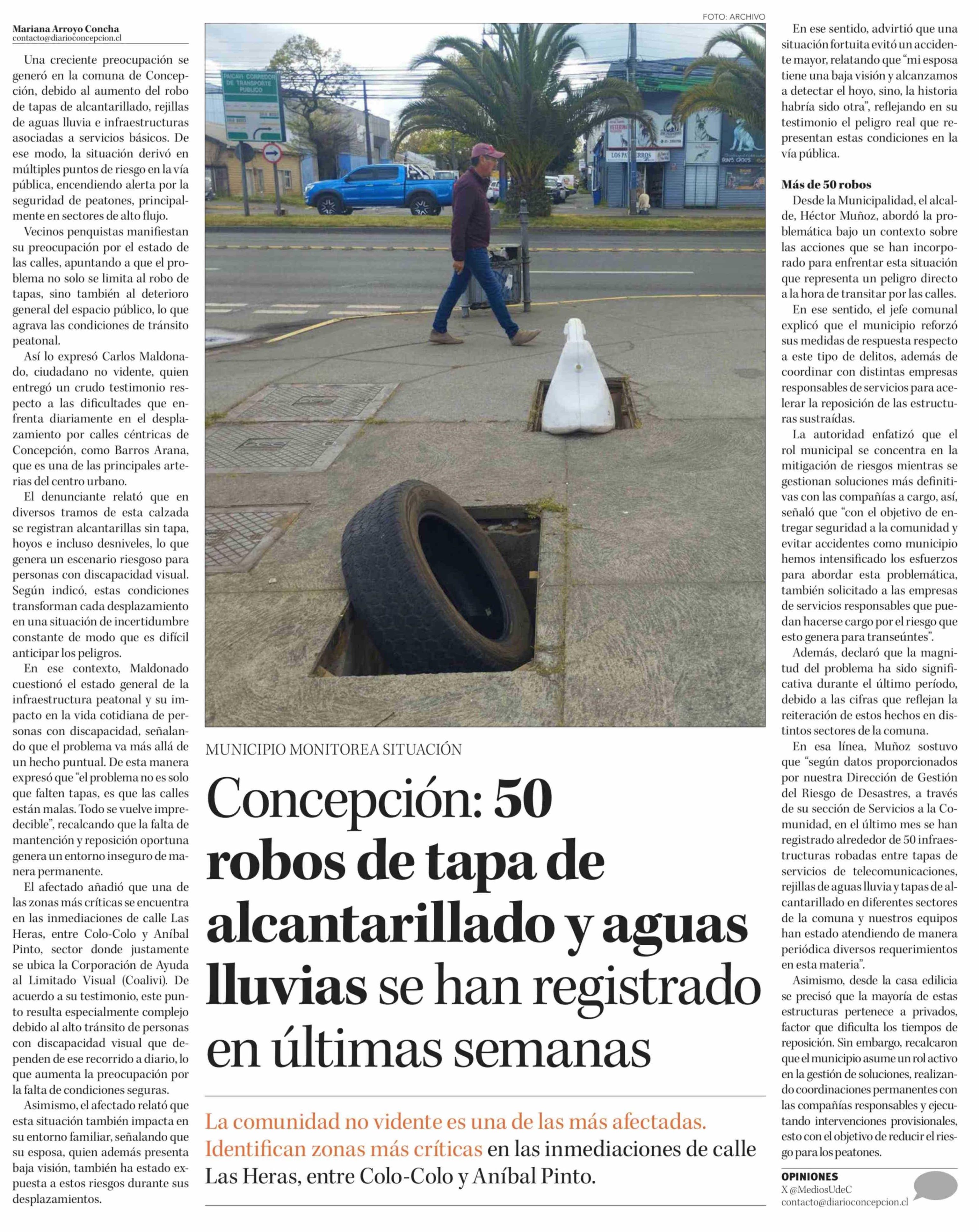 Título: Concepción: 50 robos de tapa de alcantarillado y aguas lluvias se han registrado en últimas semanas