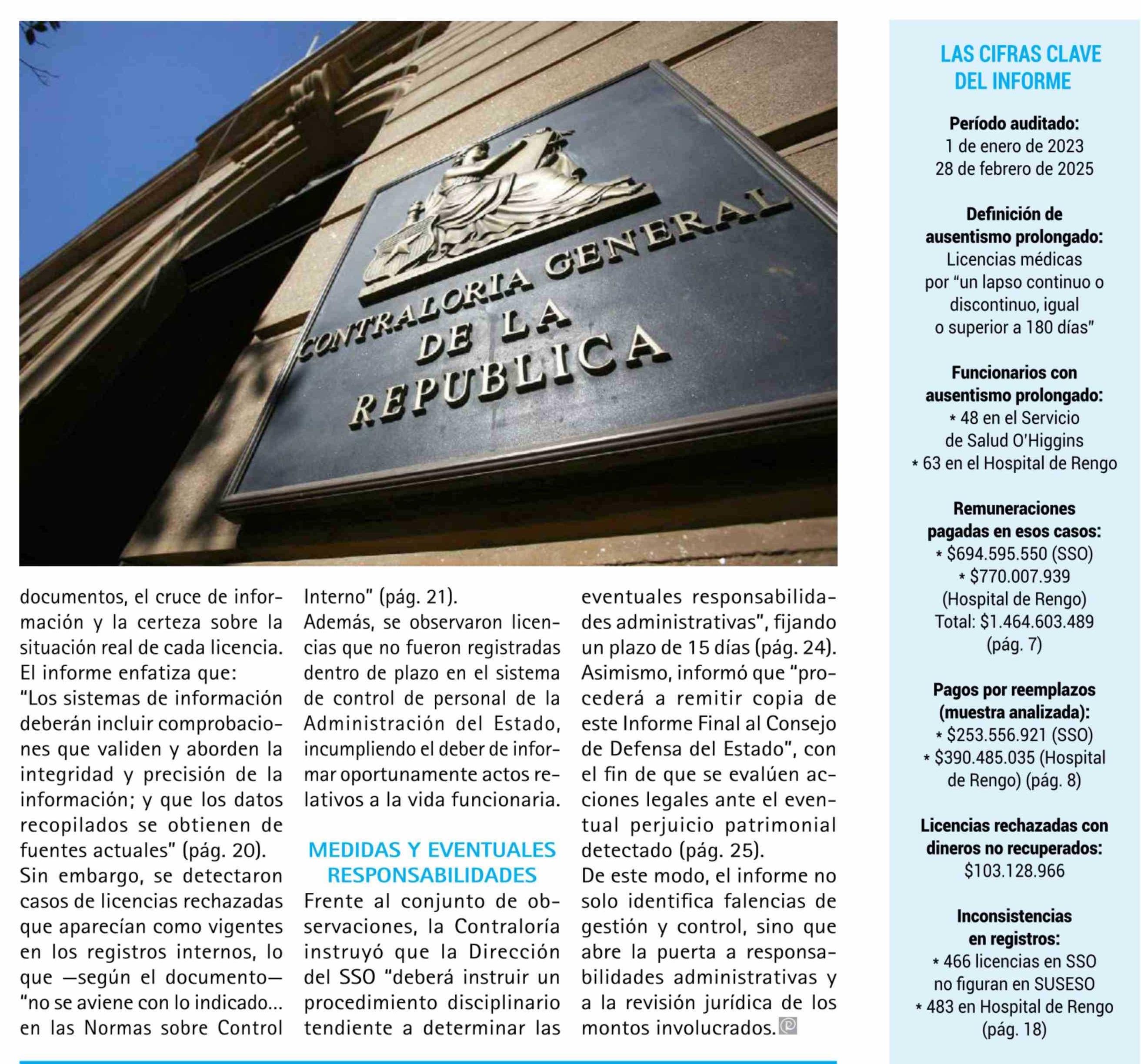 Contraloría detecta millonario impacto por ausentismo en Salud O'Higgins 05-02-2026 El Rancagüino |