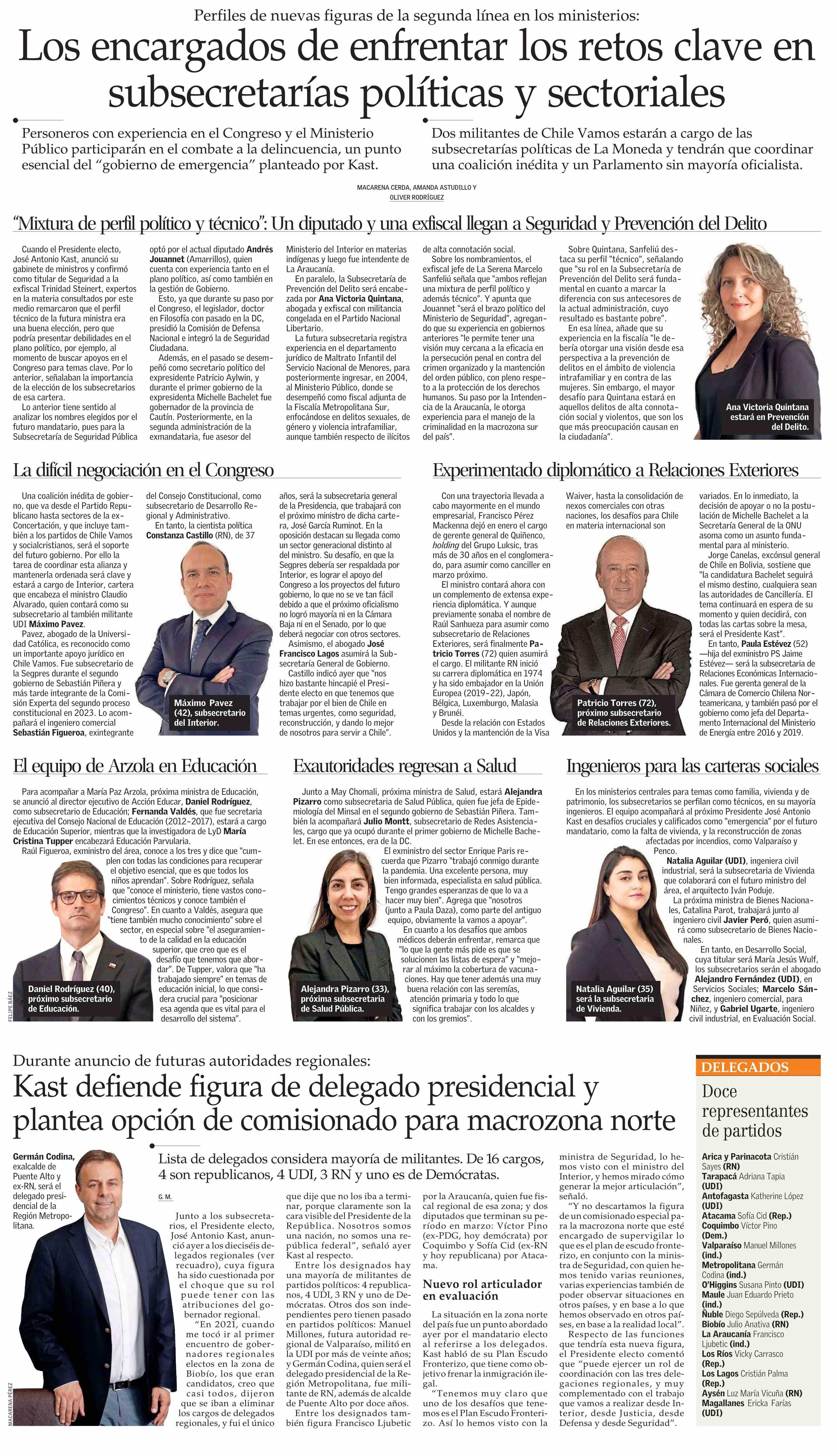 Título: Los encargados de enfrentar los retos clave en subsecretarías políticas y sectoriales
