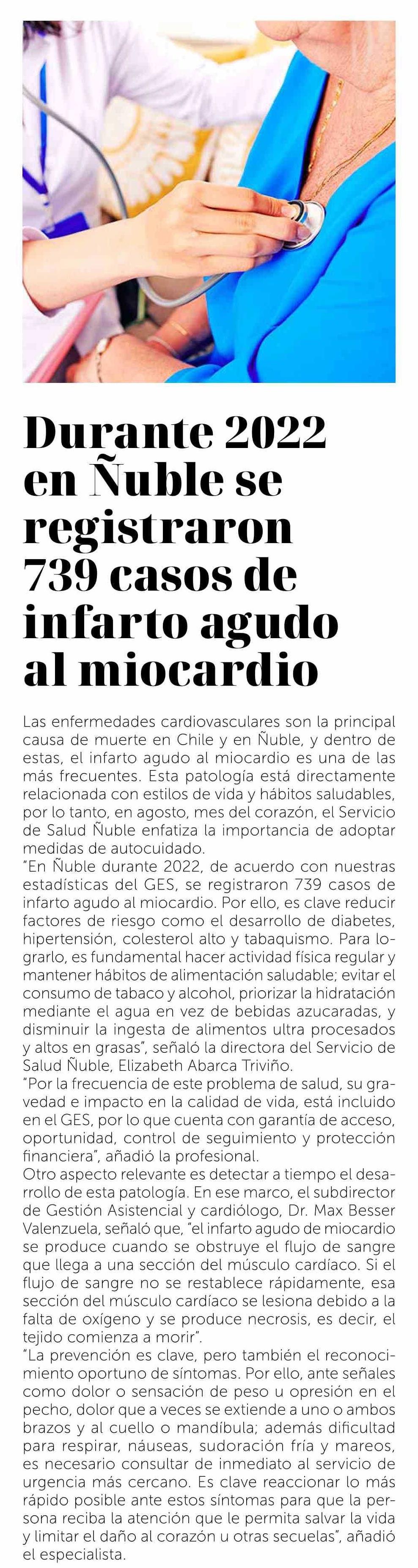 Durante 2022 en Ñuble se registraron 739 casos de infarto agudo al miocardio 15-08-2023 La Discusión |